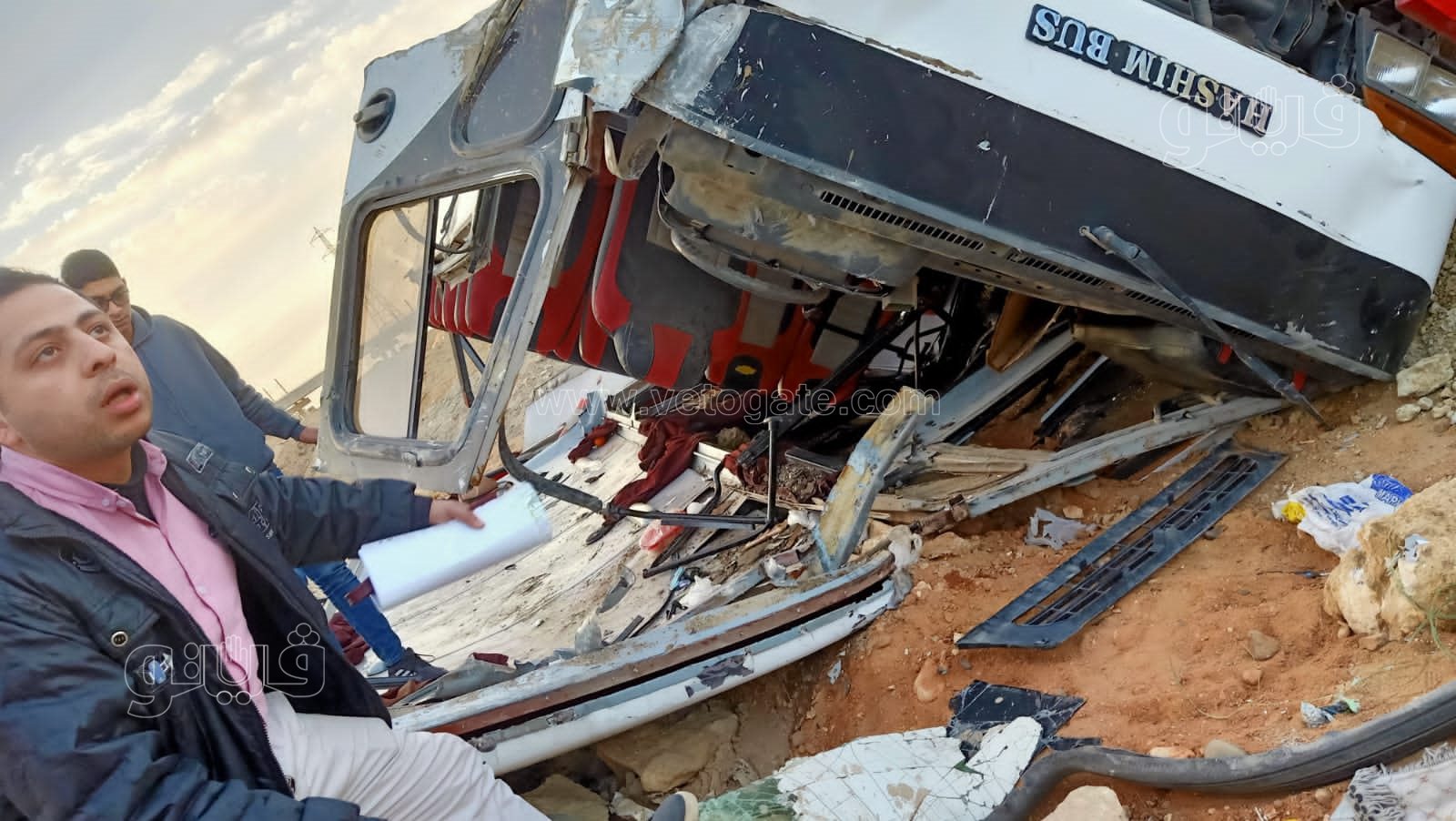 إصابة ٢٢ شخصا في انقلاب اتوبيس يحمل ٢٦ راكبا،صور