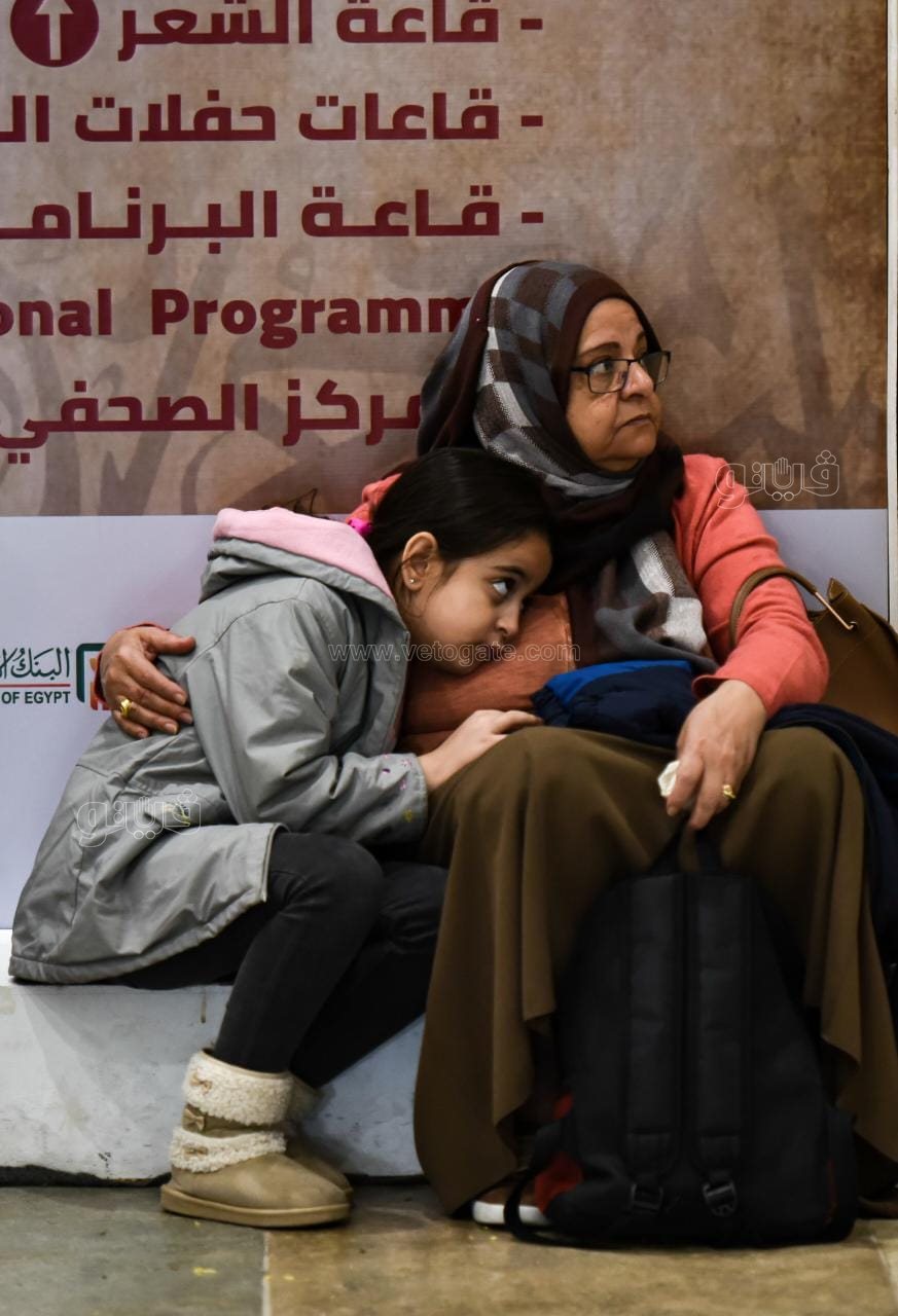 ورصدت عدسة “فيتو” اليوم الأحد من داخل معرض القاهرة الدولي للكتاب، صورة أم بعد إرهاق يوم طويل في اختيار الكتب التي ستصقل عقل طفلتها، وتهيئها للمستقبل لم تكل إحدى الأمهات من العطاء، وارتكنت إلى أحد جوانب المعرض لتدفء طفلتها في أحضانها من البرد ومن تعب يوم داخل ملتقى الثقافة والفكر.