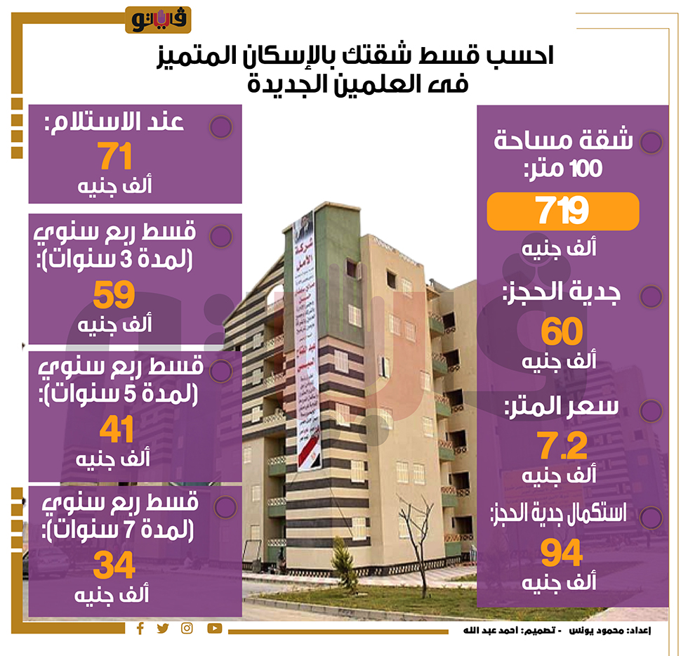 احسب قسط شقتك بالإسكان المتميز فى العلمين الجديدة (إنفوجراف)