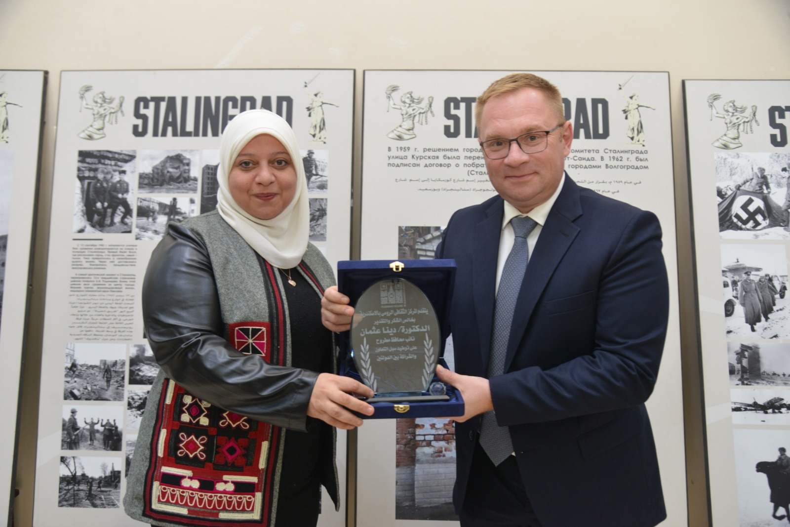 وافتتح بمكتبة مصر العامة بمرسي مطروح معرض لوحات فنية، بحضور القنصل بافيل كيديسيوك مدير البيت الروسي بالإسكندرية والدكتورة دينا عثمان نائب محافظ مطروح واسامة محمد المرسي مدير المكتبة العامة بمرسي مطروح بمناسبة ذكرى موقعة ستالينجراد معرض لوحات فنية.