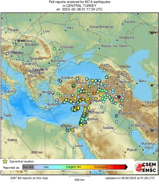 وقال المعهد القومي للبحوث الفلكية والجيوفيزيقية في منشور له عبر الصفحة الرسمية على الفيس بوك:"السادة والسيدات أصدقاء صفحة المعهد، نود أن نطمئنكم بخصوص زلزال اليوم والذى حدث فى نطاق الأراضى التركية وكان له آثار تدميرية داخل الأراضى التركية والسورية وهو بعيد تماما عن الأراضى المصرية".