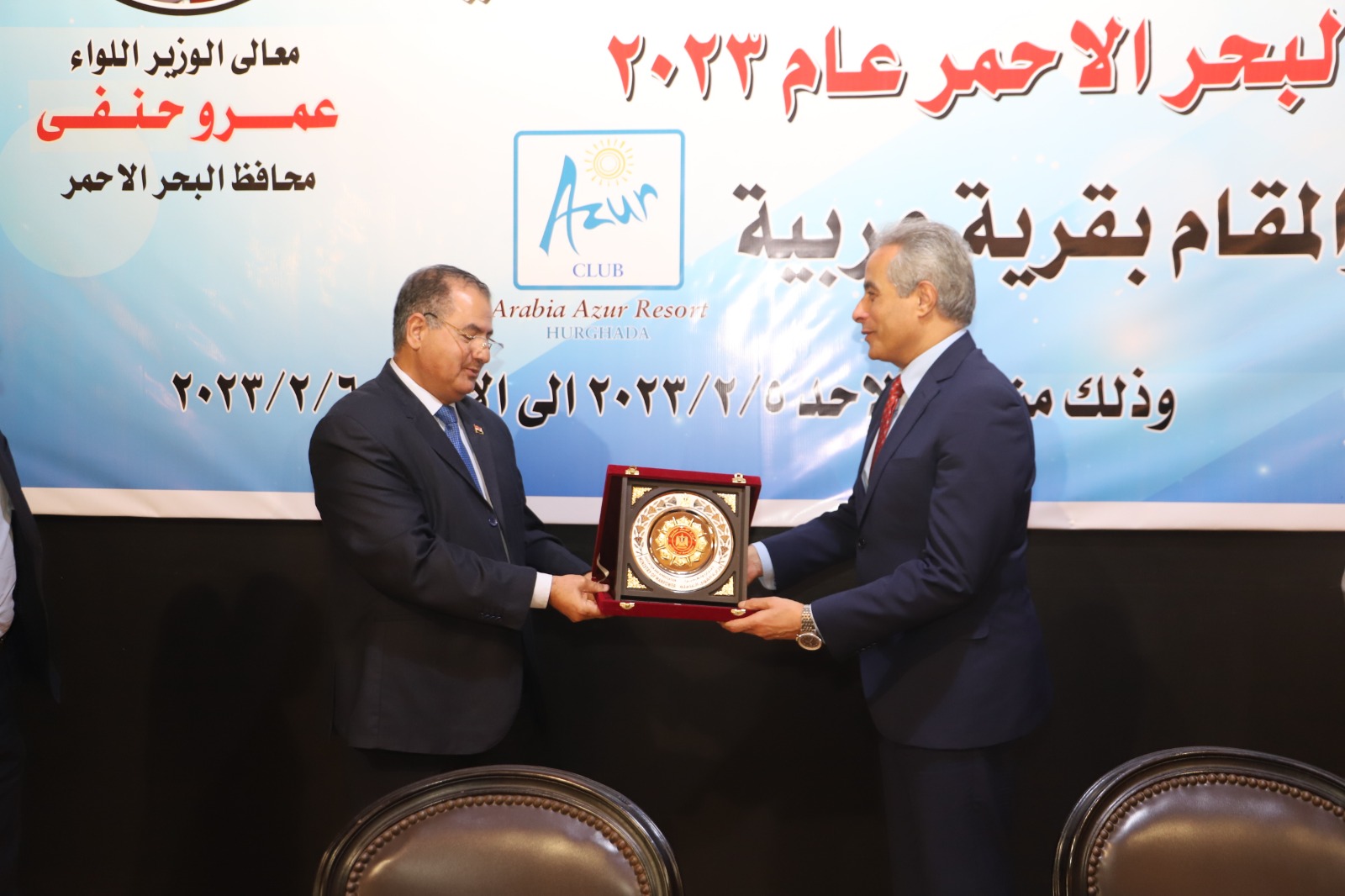 بدوره اشاد اللواء احمد مرزوق سكرتير عام محافظة البحر الأحمر في كلمته التي ألقاها نيابة عن اللواء عمرو حنفي المحافظ، بدور وزارة القوى العاملة والتي تبذل كل الجهود بالشراكة مع كافة الجهات والمنظمات ذات الصلة بتوفير السلامة المهنية وتحسين ظروف وبيئة العمل بالإضافة الى توفير الحماية والرعاية الاجتماعية لكل العاملين، كما تقوم المديرية بالتنسيق مع القطاع السياحي ايمانا منها بأهمية السلامة والصحة المهنية باتخاذ كافة إجراءات الوقاية والحماية من المخاطر خاصة وأن الحفاظ على العامل وصحته وأمنه وسلامته هدف اصيل للوزارة ولأصحاب العمل لذا فان الوزارة تقوم بالتدريب عن طريقها مباشرة اوعن طريق الإشراف وتقديم الاستشارات والدعم الفني واللوجستى للقطاع الخاص،مقدما الشكر لإدارة قرية عرابي السياحية والعاملين بها لحسن الضيافة والاستقبال،موضحا انها من المنتجعات السياحية العريقة ومن أوائل المنشات السياحية فى مدينة الغردقة ويتمتع العاملين بها بخبرات متراكمة.