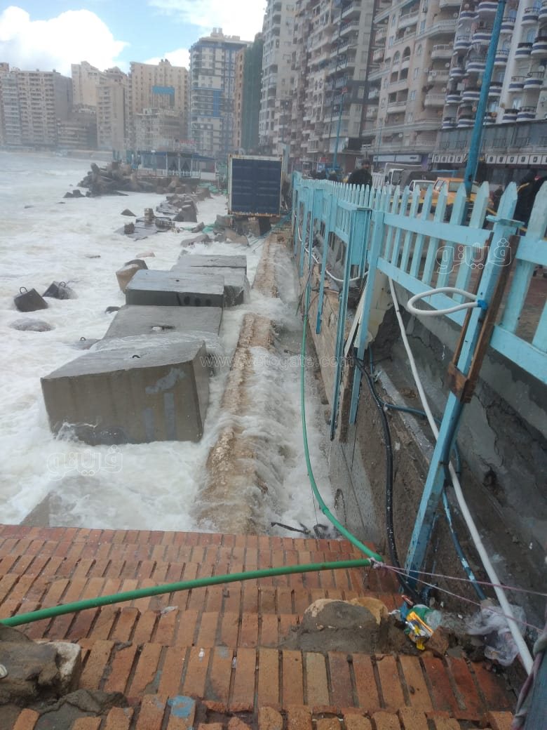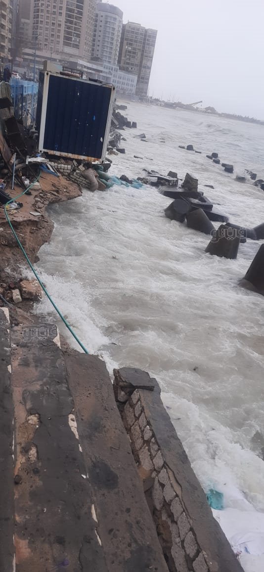 وأكد المحافظ، أنه تم استدعاء جهاز تعمير الساحل الشمالي وشركة المقاولون العرب للعمل علي إصلاح الأمر والذي جاء نتيجة لنحر البحر وارتفاع الأمواج وشدتها بسبب سوء الأحوال الجوية، وسيجري وضع كتل خرسانية لمنع نحر البحر للكورنيش.