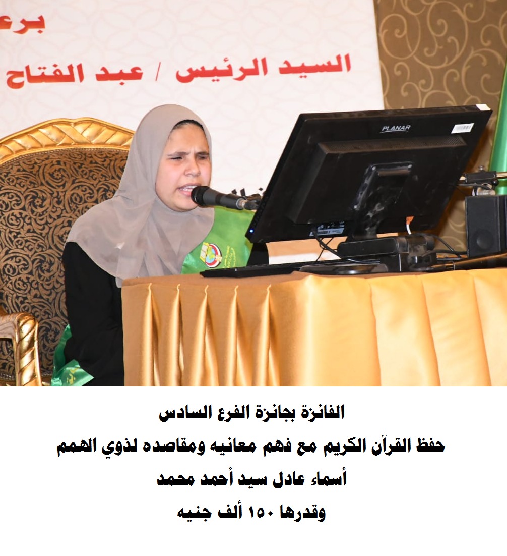الفرع السادس: حفظ القرآن الكريم مع فهم معانيه ومقاصده لذوي الهمم، وعدد المتسابقين 5 متسابقين بجائزة 150 ألف جنيه.