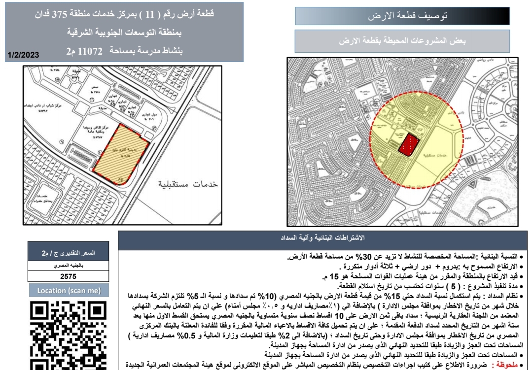 وقطعه أرض رقم (2) بمركز خدمات الحي الثاني بنشاط تجاري بمساحة 22131