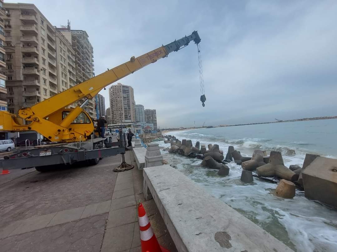 كما تم التنسيق مع السادة قيادات المحافظة وإدارة مرور الإسكندرية لتسهيل تنفيذ أعمال الحماية العاجلة وحركة سيارات نقل الأحجار والخرسانة.