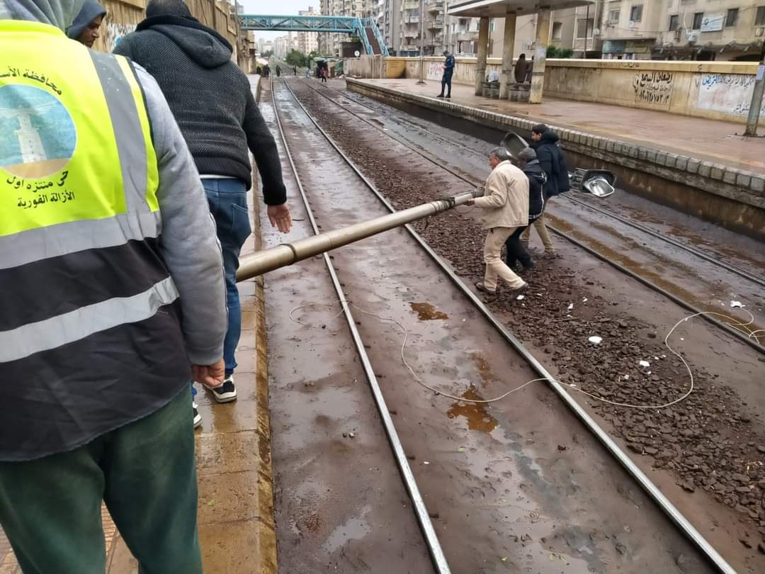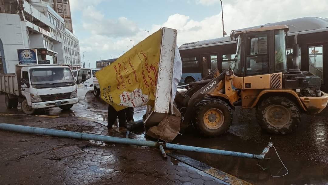 كما تم رفع عمود إنارة ولوحة إعلانية سقطا نتيجة شدة الرياح أمام مسجد سيدي بشر بطريق الكورنيش وتم عزل وتأمين الكهرباء بهما ورفعها بسيارات الحي.