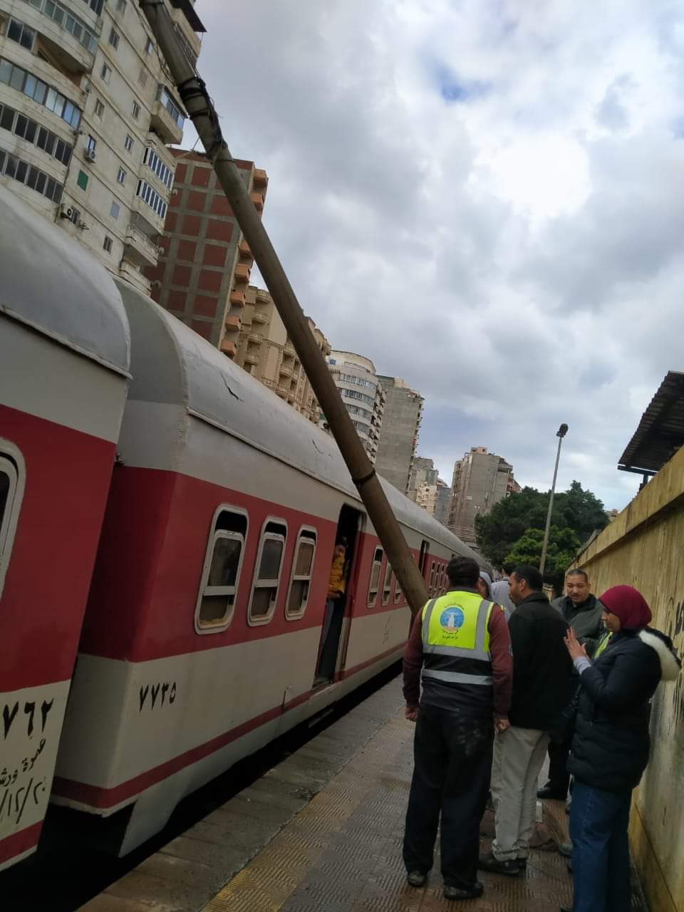 سقوط أعمدة إنارة بمحطة قطار ولوحات إعلانات بالكورنيش