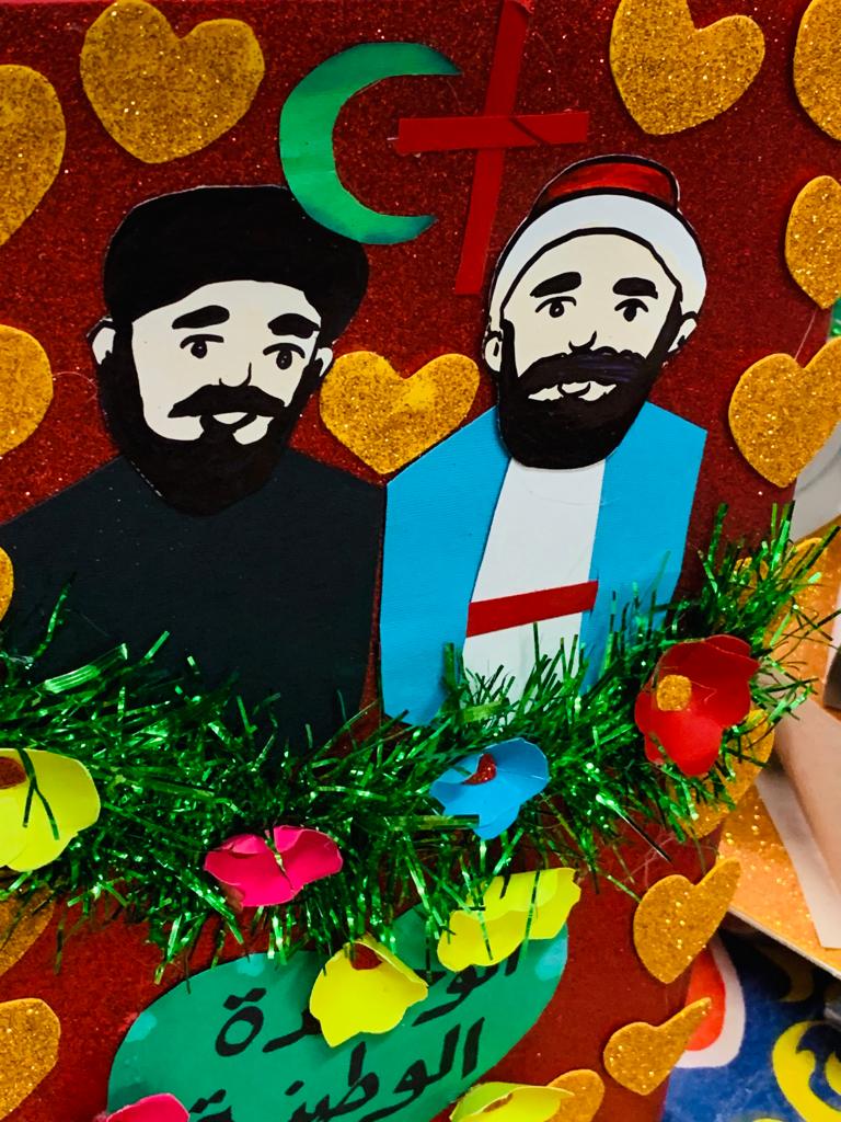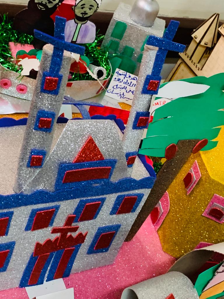واستقبل تلاميذ المدرسة المسئولين بمجسمات لشيخ وقسيس ومجسم مسجد وكنيسة تعبيرا عن الوحده الوطنية والنسيج الواحد