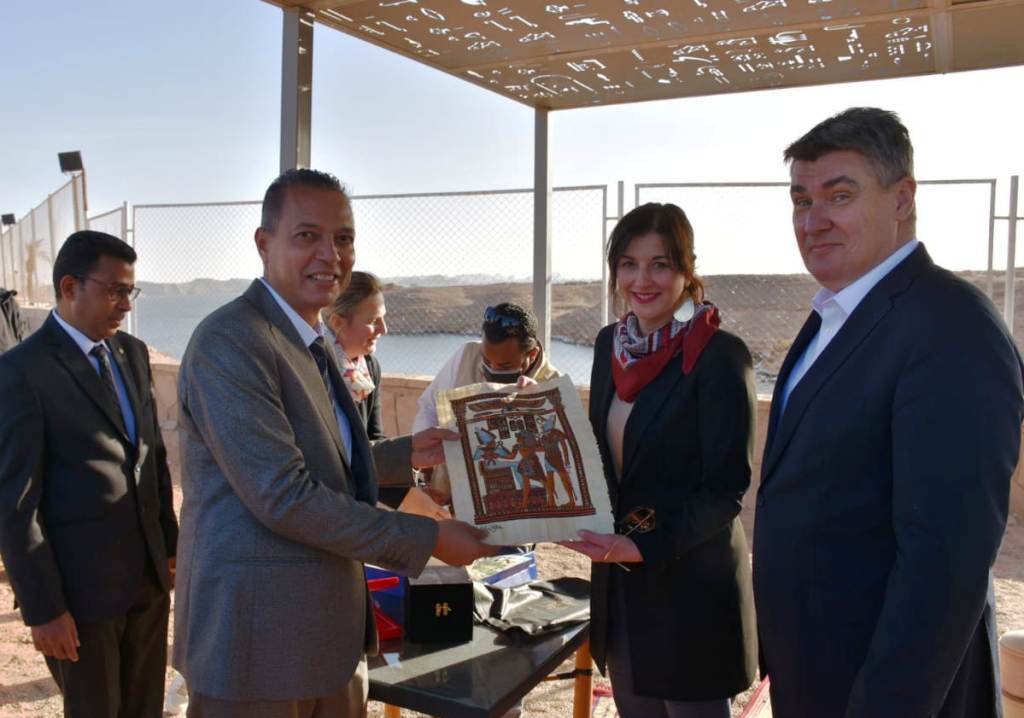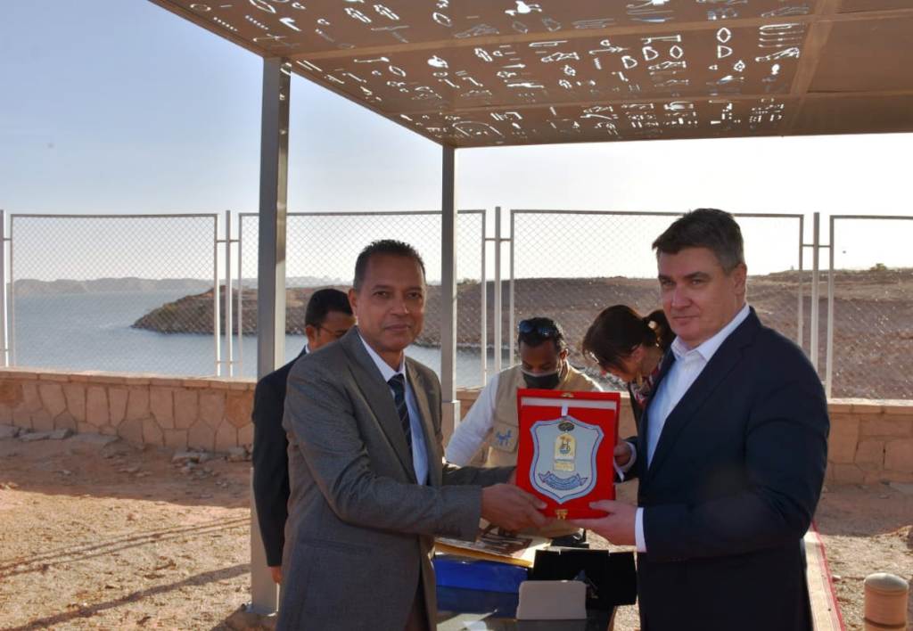 وعقب إستماعه لشرح مفصل عن تاريخ ومكونات معبدى أبو سمبل من الدكتور عبد المنعم سعيد المشرف العام على شئون السياحة والأثار بأسوان، كما قام نيابة عن محافظ أسوان كل من الدكتور أحمد فرمان مستشار المحافظة للسياحة والأثار والهوية البصرية، وسيد سعدى رئيس مدينة أبو سمبل السياحية بتقديم درع المحافظة للرئيس الكرواتى، وهدايا تذكارية تعبر عن التراث الأسوانى والفرعونى الأصيل.