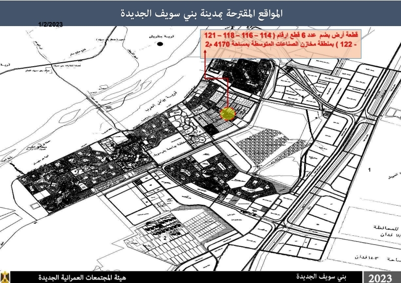 وحددت هيئة المجتمعات العمرانية الجديدة قطع الأرض بمدينة بني سويف الجديدة بنظام التخصيص الفوري بنشاط خدمي ومخازن، وتكون كالآتي: