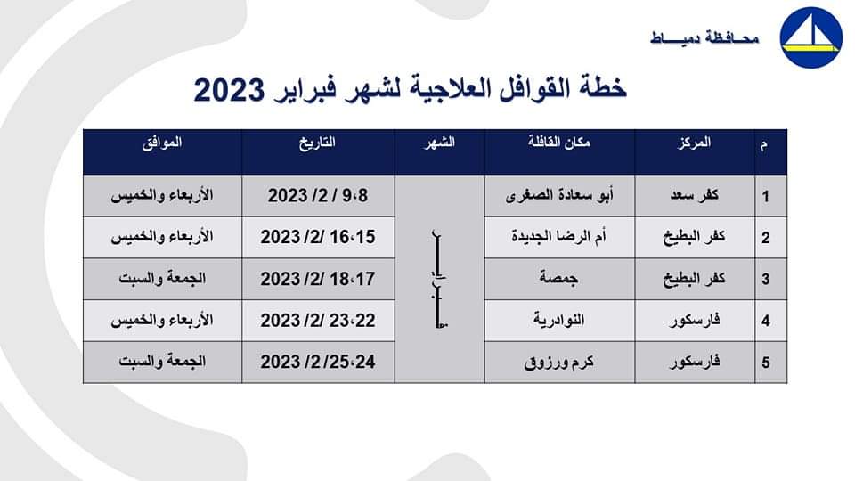 "صحة دمياط" تُعلن عن بدء تنفيذ خطة القوافل العلاجية المجانية لشهر فبراير