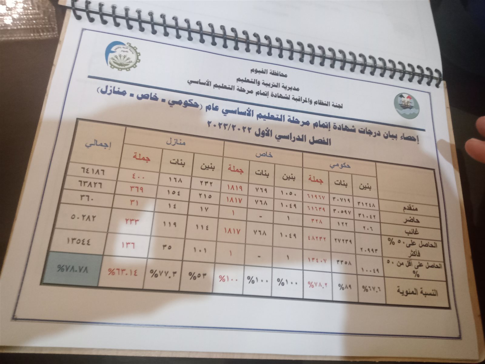 وكان الدكتور أحمد الأنصاري محافظ الفيوم، اعتمد صباح اليوم، نتيجة الشهادة الإعدادية ـ الفصل الدراسي الأول ـ لعام 2022/2023، حيث بلغت نسبة النجاح 78.78 % على مستوى المحافظة، وذلك بحضور الدكتورة أماني قرني وكيل وزارة التربية والتعليم بالفيوم، والأستاذ خالد يونس رئيس لجنة النظام والمراقبة لامتحان شهادة المرحلة الإعدادية بالفيوم للفصل الدراسي الأول.