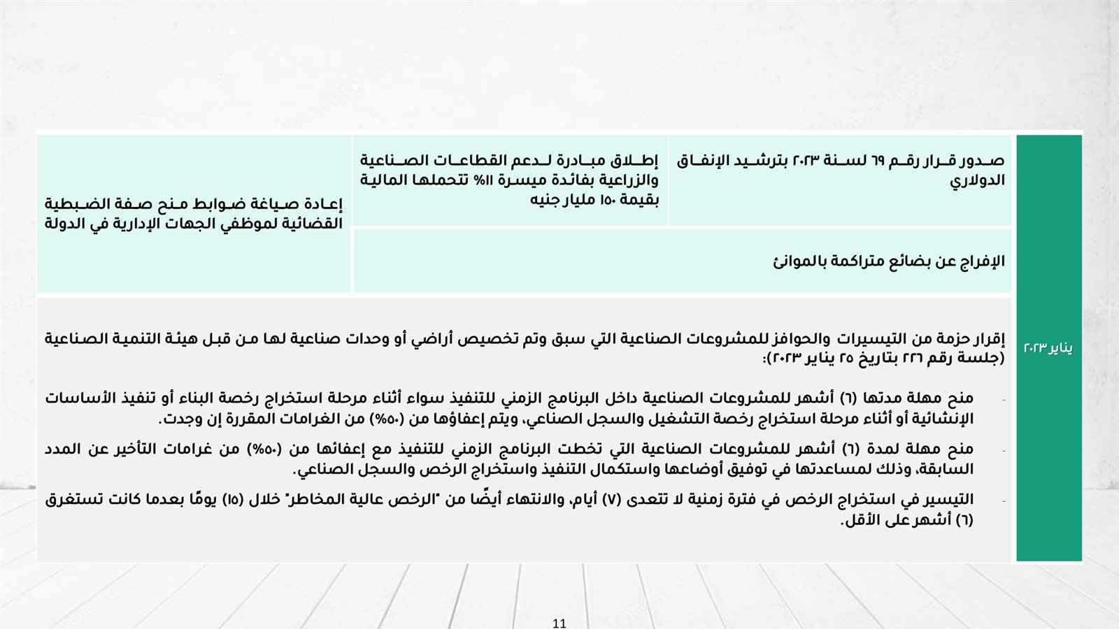 وقال مصطفى مدبولى: توسعنا في نظام الرخصة الذهبية وأطلقنا مبادرة دعم فائدة القروض ويتحمل 11 % والدولة تتحمل الباقى.