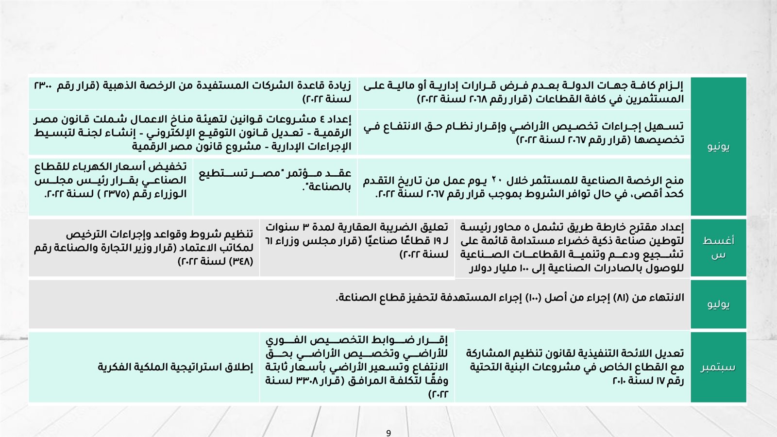 وقال رئيس الوزراء: أقرينا تخصيص الأراضى بنظام حق الانتفاع ونظام التملك وتسدد على أقسام وسعرنا كل الأراضى الصناعية على مستوى الجمهورية بسعر ثابت.