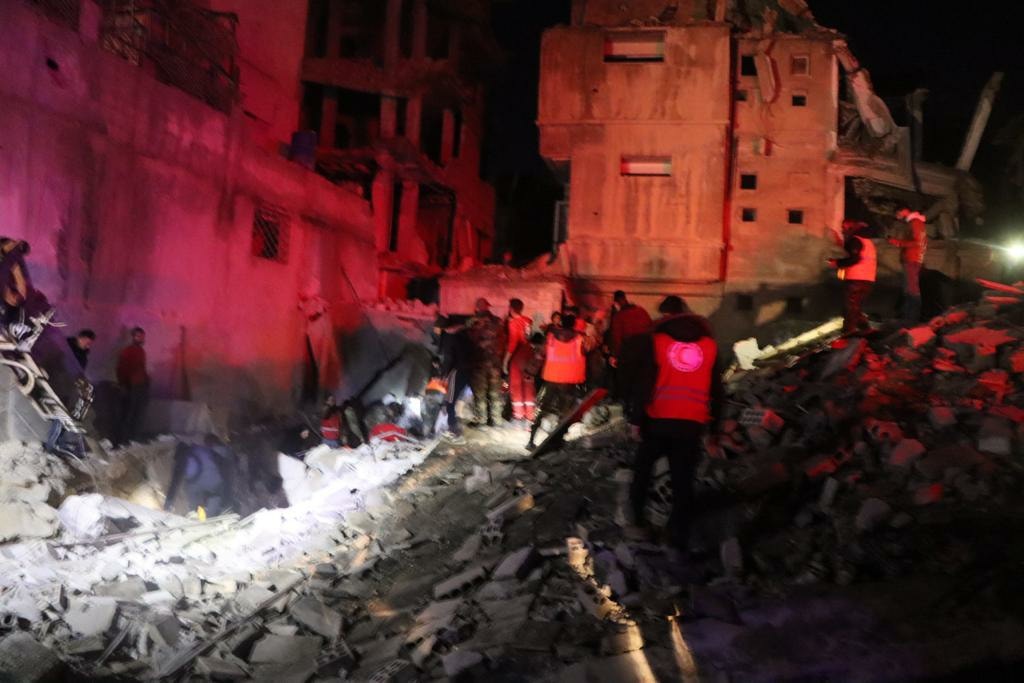 زلزال سوريا، انهيار مبنى من 4 طوابق بريف دمشق ومحاولات لإنقاذ عالقين تحت الأنقاض