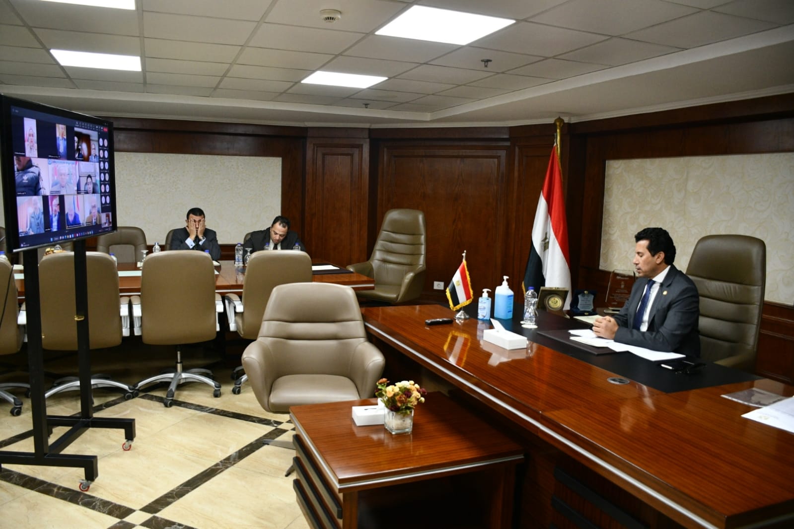 عقد الدكتور أشرف صبحى وزير الشباب والرياضة، اجتماعا مع مديري مديريات الشباب والرياضة على مستوى جميع محافظات الجمهورية -عبر تقنية الفيديو كونفرانس-؛ لمناقشة مجموعة من الملفات المتعلقة بالمشروعات والبرامج المختلفة المنفذة بحضور قيادات الوزارة.