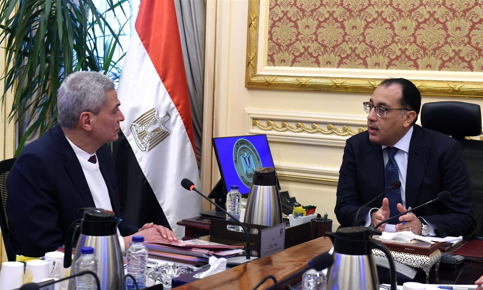 التقى اليوم الدكتور مصطفى مدبولي، رئيس مجلس الوزراء، اللواء طبيب بهاء الدين زيدان، رئيس الهيئة المصرية للشراء الموحد والإمداد والتموين الطبي وإدارة التكنولوجيا الطبية؛ لمتابعة عدد من ملفات العمل بالهيئة.