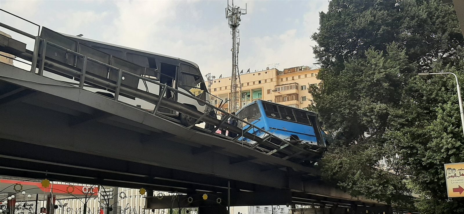 وشهد كوبري الدقي بالجيزة، أمس الخميس، حادثًا مروعًا إثر اصطدام حافلتي ركاب وتجاوز إحداها الحاجز الجانبي.