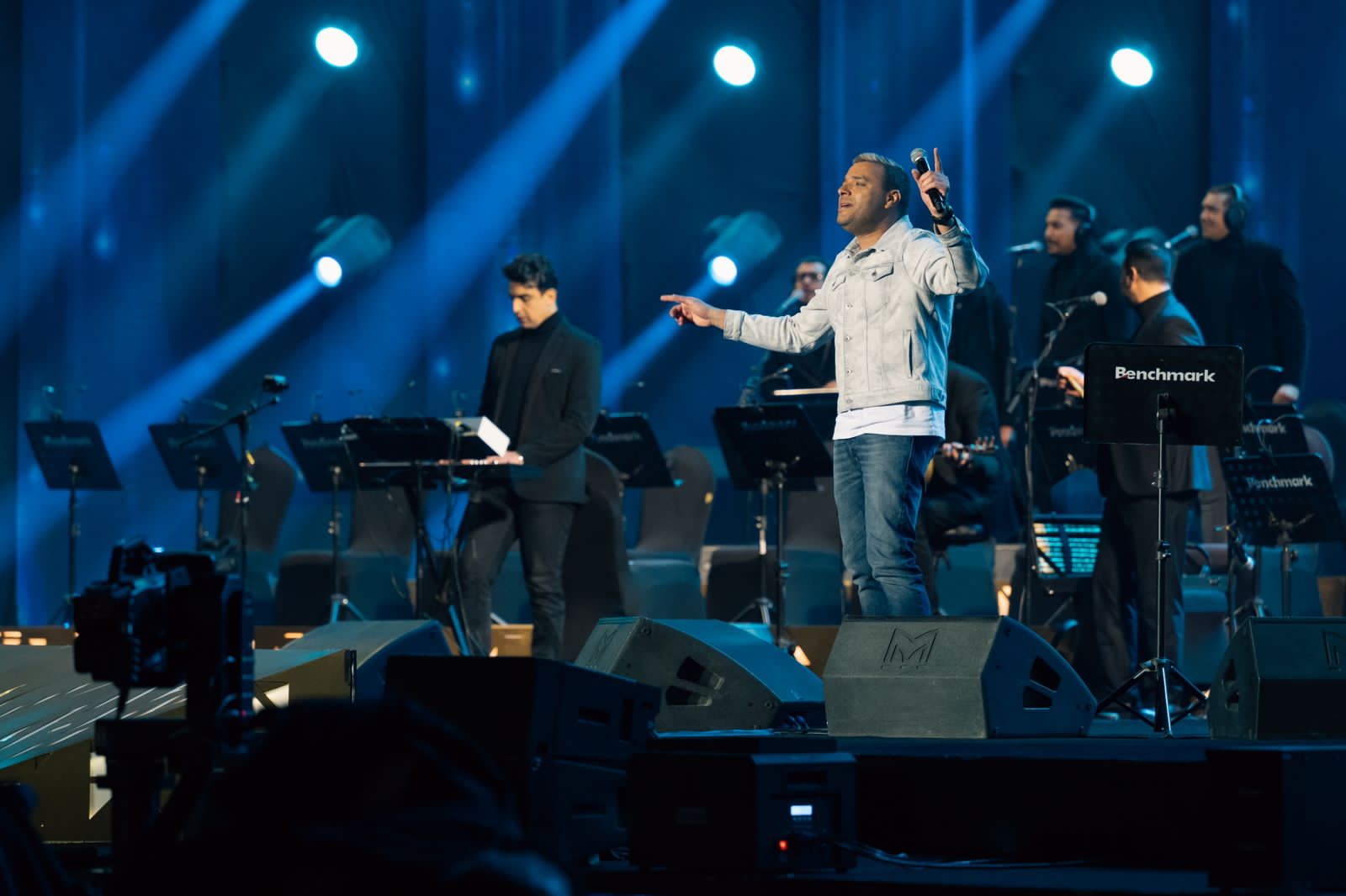 ثم واصل الحفل بأغانيه المميزة التي تألق بها طوال مشواره الفني على مدار ساعتين منها: "يمكن خبر، حبينا واتحبينا، معايا هتبدع، خاصمت الشوارع، نفسها تشوفني"، وغيرهم من الأغاني.