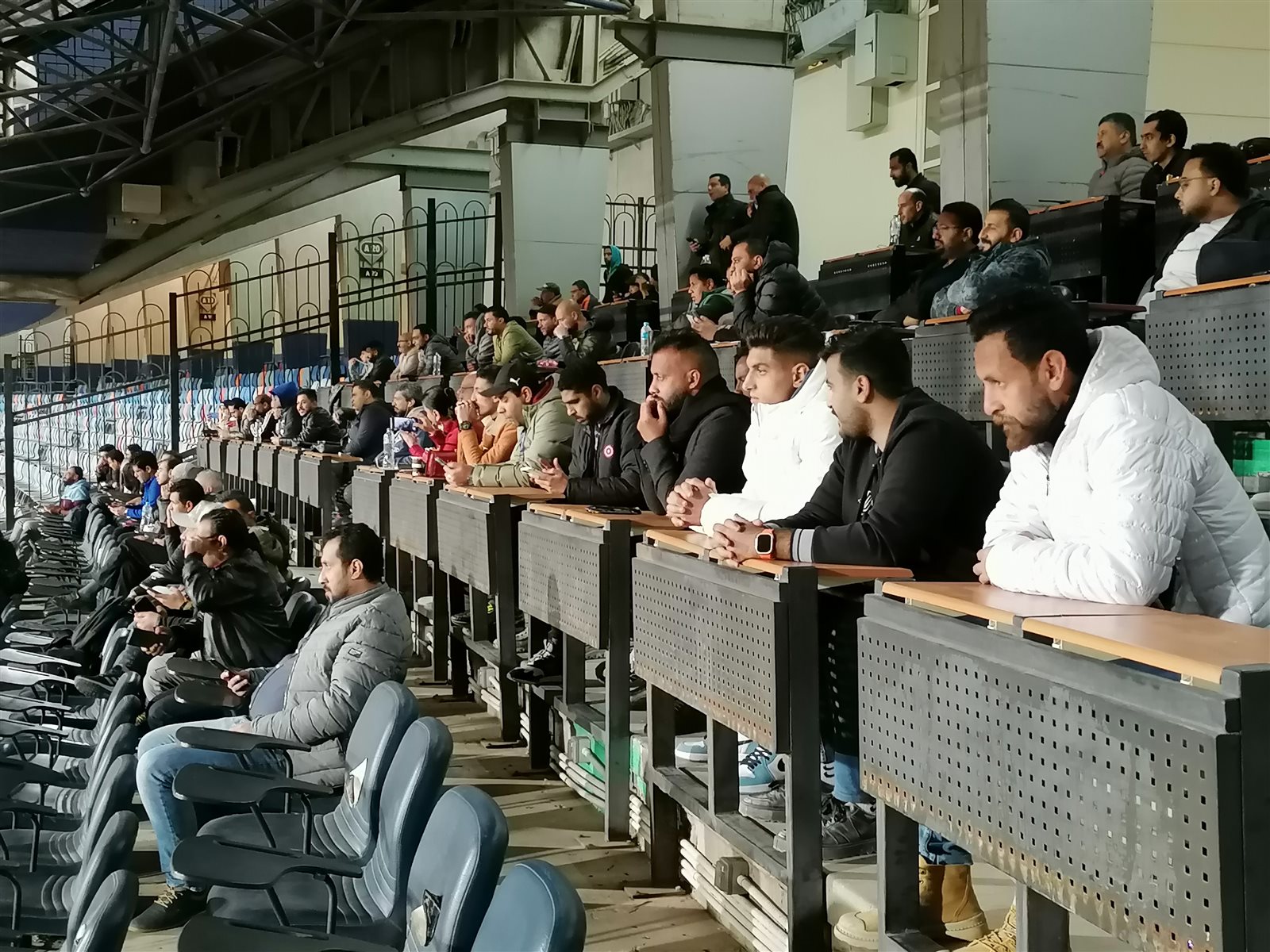 وتواجد محمود شبانة في المدرجات بعد عدم قيده حتى الآن في قائمة الفريق، بسبب المديونات لاتحاد الكرة.