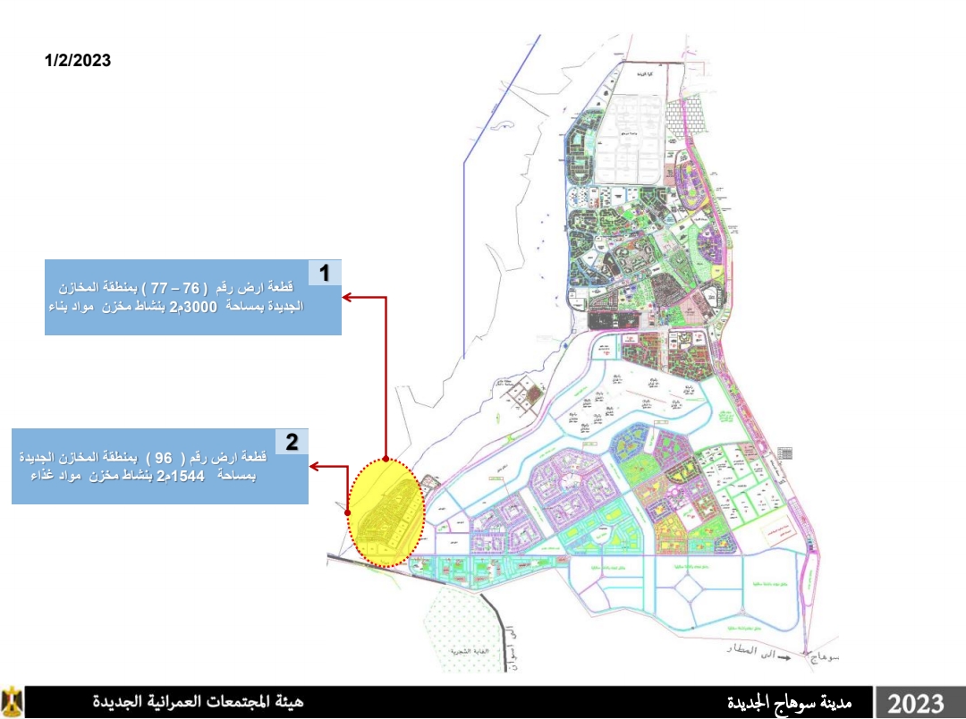 حددت هيئة المجتمعات العمرانية الجديدة قطع الأرض بمدينة سوهاج الجديدة بنظام التخصيص الفوري بنشاط مخازن كالآتي: