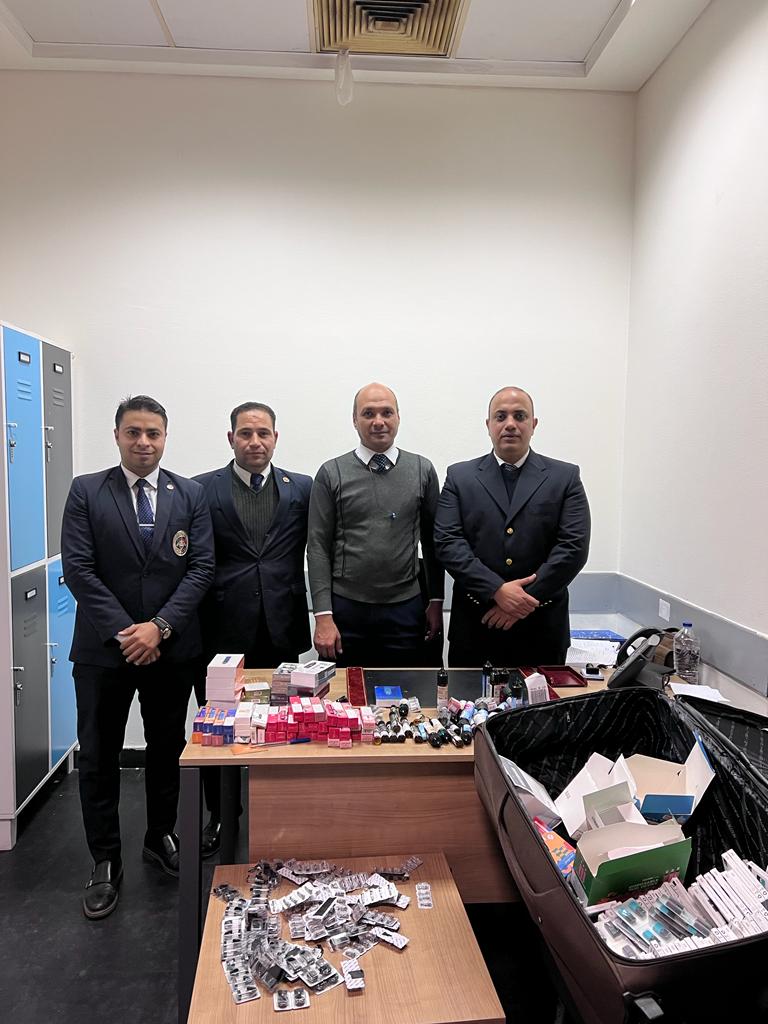 وأضافت المصادر أنه بتفتيش حقائب الراكب على جهاز الفحص بالأشعة بواسطة كل من أحمد عبد العليم مأمور الجمرك، ومحمد عبد المنعم صالح رئيس القسم، واللذان تلاحظ لهما وجود عبوات متكررة بكثرة داخل حقائب الراكب.