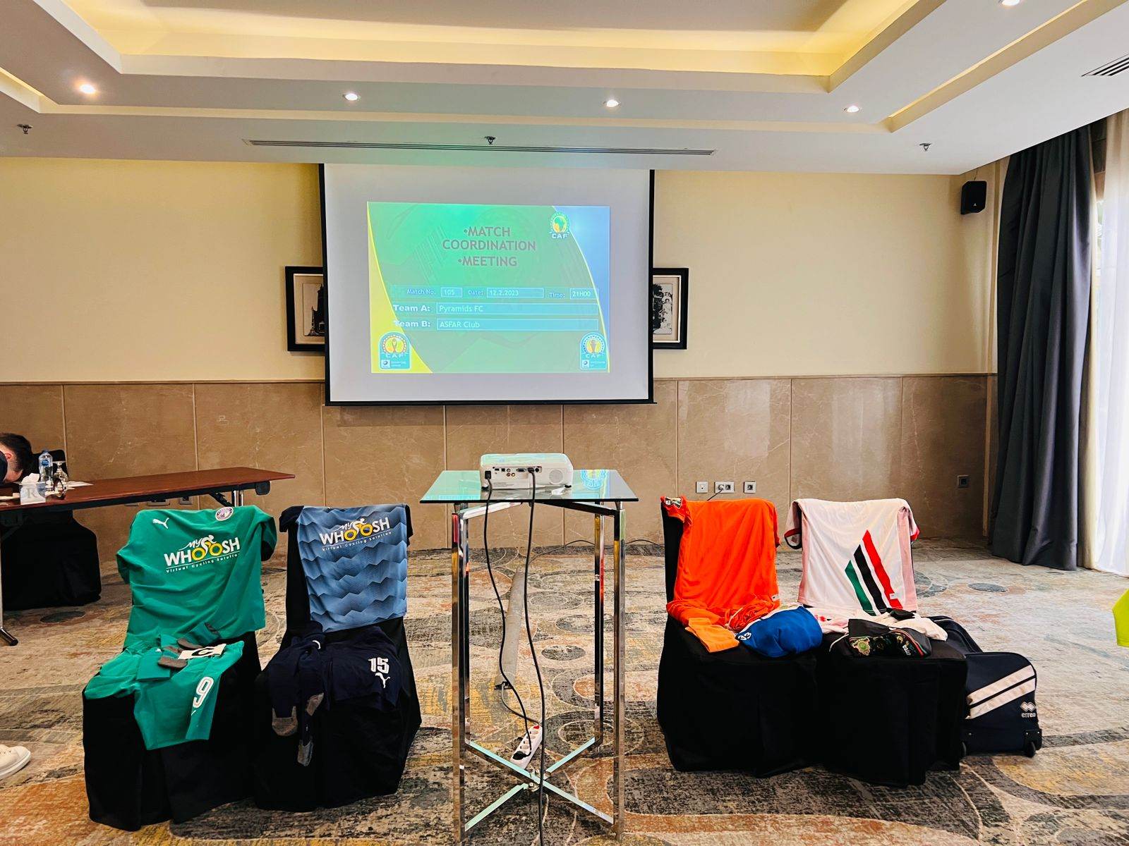 مثل بيراميدز في الاجتماع الفني، أحمد زاهر المدير الإداري، ووليد مهدي مدير المباريات، وشريف جمال مدير العلاقات العامة، وعاطف شادي المنسق الإعلامي.