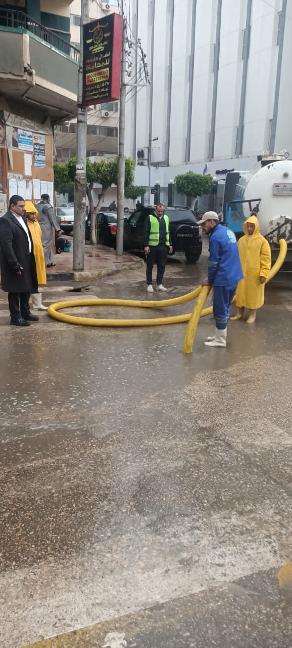 وكلف رؤساء الأفرع بمتابعة عملية شفط مياه الأمطار بالشوارع وعلى الفور تم الدفع بالمعدات اللازمة من عربات الكسح وماكينات الشفط بالتنسيق مع الجهات المعنية وتم عمل اللازم وشفط تجمعات مياه الأمطار بأماكن متفرقة بالمحافظة مع اتخاذ كافة الاجراءات الاحترازية أثناء التعامل مع مياه الأمطار.