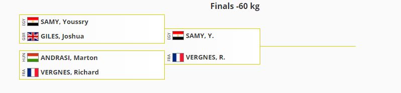 وحقق يسري سامي إنجازا تاريخيا خلال مشاركته في منافسات وزن 60 كجم، بعد تأهله للمباراة النهائية، والفوز على بطل منتخب إنجلترا في الدور نصف النهائي.
