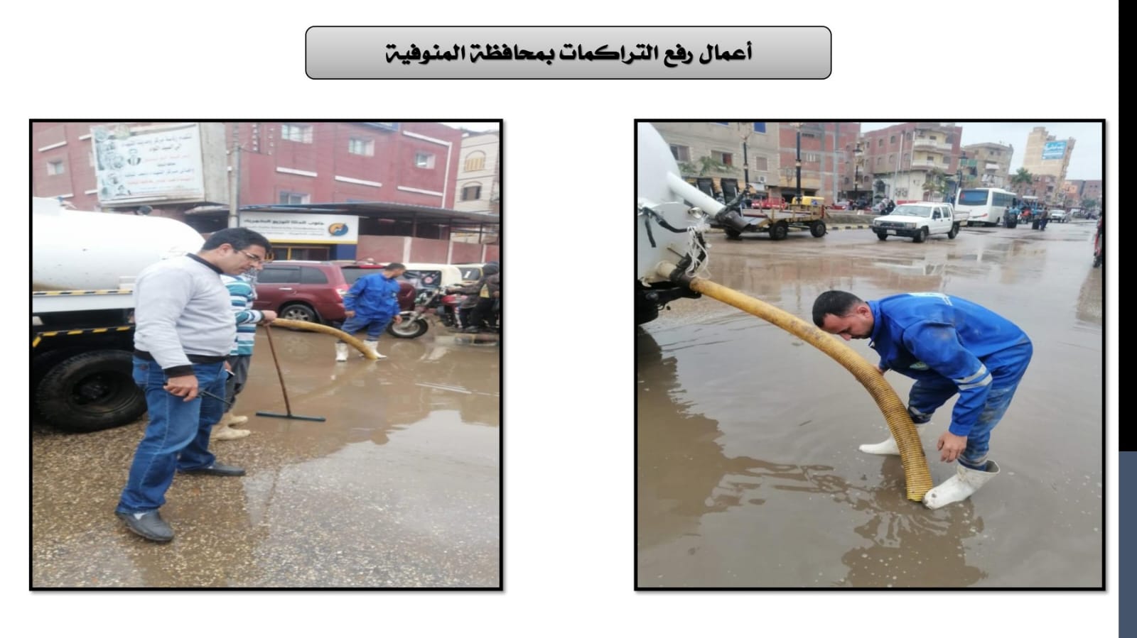 كما أوضح التقرير استمرار رفع تجمعات المياه نتيجة سقوط أمطار متوسطة على محافظات كفر الشيخ وبورسعيد والبحيرة والمنوفية والشرقية، كما سقطت أمطار خفيفة الى متوسطة على الغربية ودمياط والقليوبية، وتقوم المحافظات المشار إليه بشفط مياه الأمطار بالتنسيق مع كافة الجهات المعنية.