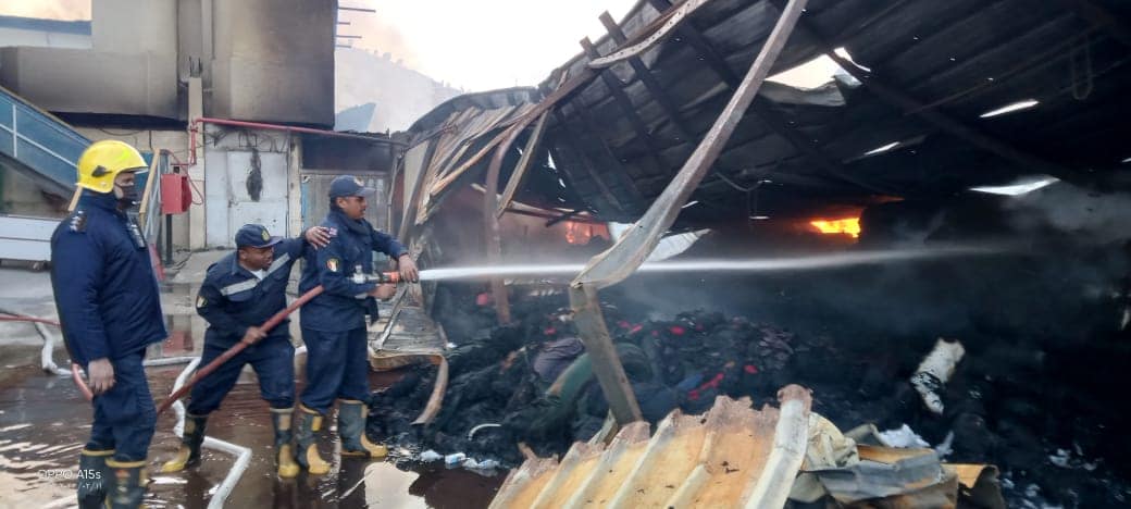 بذل رجال الحماية المدنية قصارى جهودهم برئاسة العميد وليد عثمان مدير الإدارة في إخماد الحريق مصنع للملابس الجاهزة بالسويس بمشاركة شركات البترول بسيارات الإطفاء ورجال الإطفاء بالشركات في أعمال الإطفاء حريق هائل نشب في مصنع للملابس الجاهزة “ مصنع بلازا”.