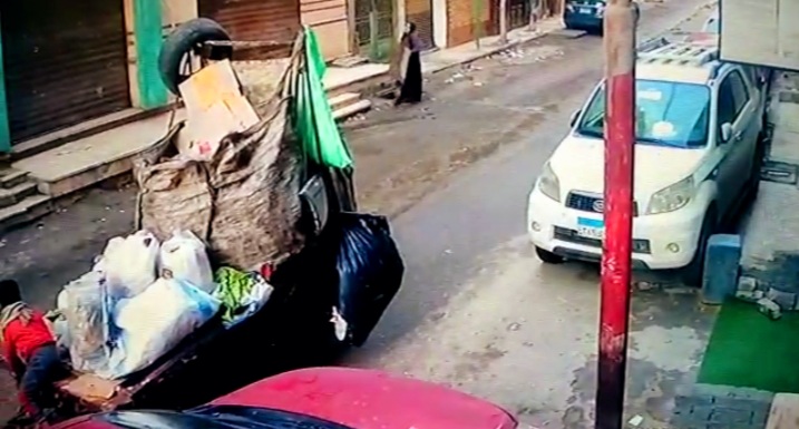 وأظهرت كاميرات المراقبة شارعًا عرضه يزيد على 9 أمتار وتنتظر سيارات على جانبيه وفجأة ظهرت سيارة كارو تستقلها سيدتان ومعهما طفل، عبرت الشارع ثم ترجّلت إحداهما وأخذت تستطلع الطريق وتراقب عدم وجود مارة حتى وصلت إلى بلاعة صرف صحي مغطاة ثم نزعت غطاءها، متوجهة نحو السيارة الكارو، التي كانت محملة بالقمامة في أكياس بلاستيك كبيرة الحجم.