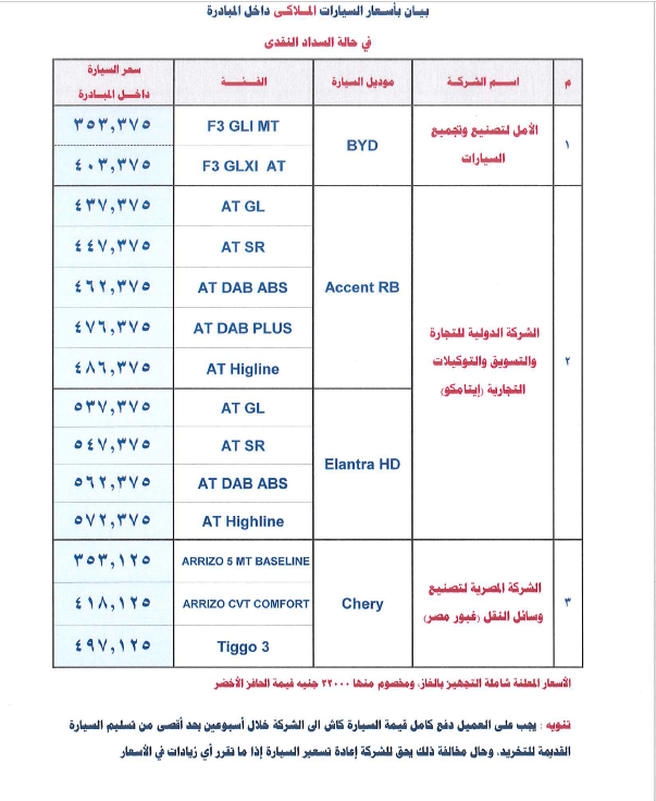 GL بسعر 537.375 ألف جنيه بدلًا من 430.250 ألف جنيه بزيادة 107.125 ألف جنيه.