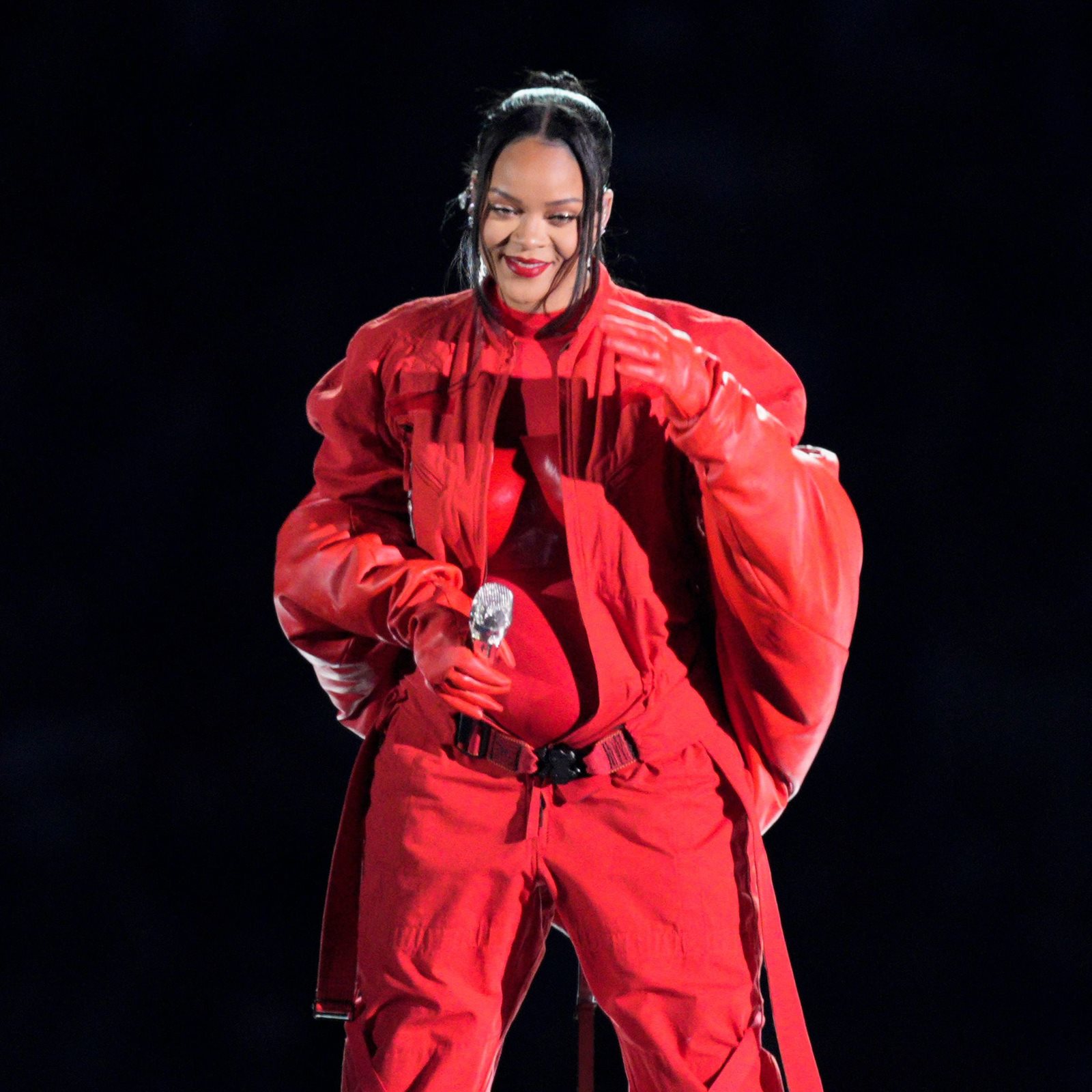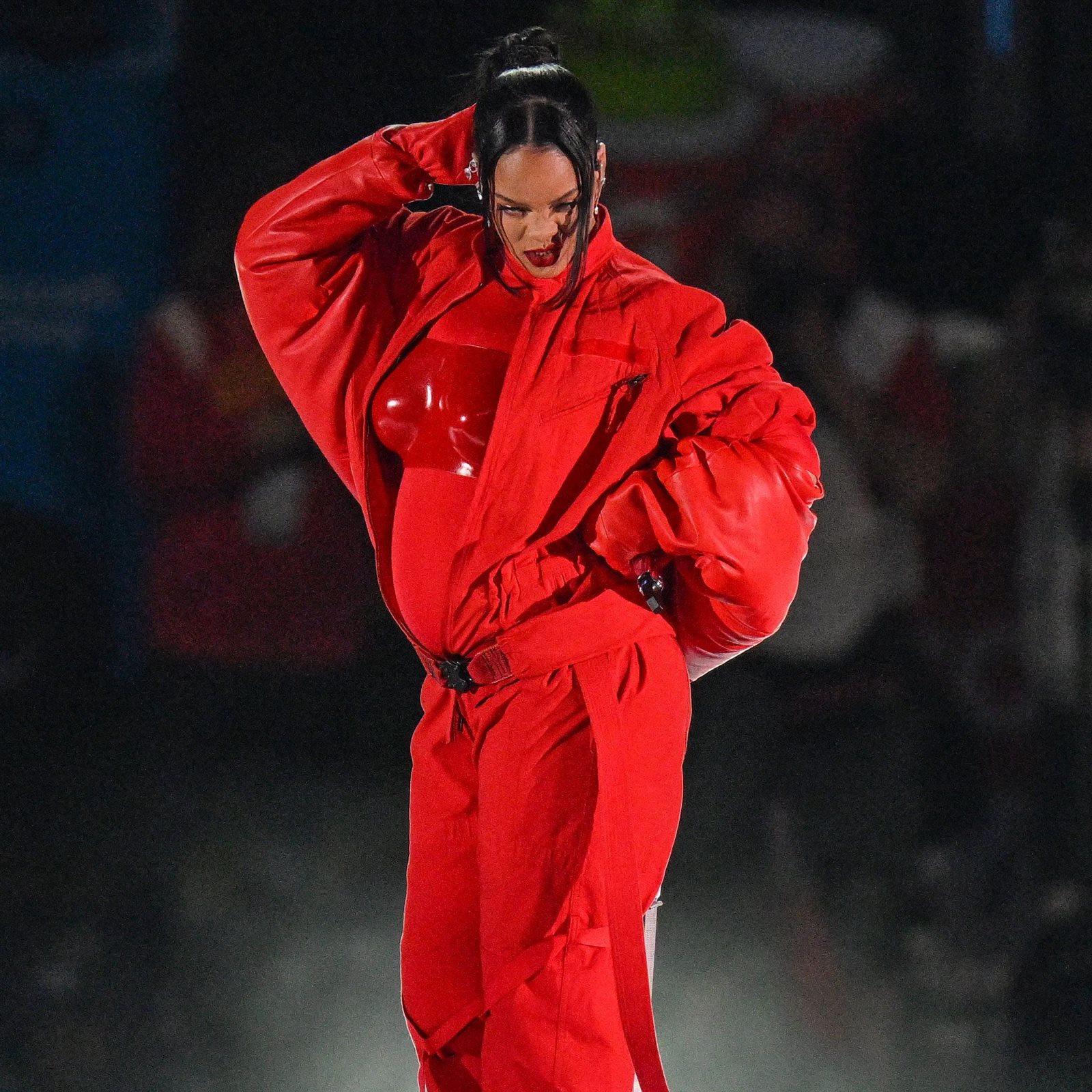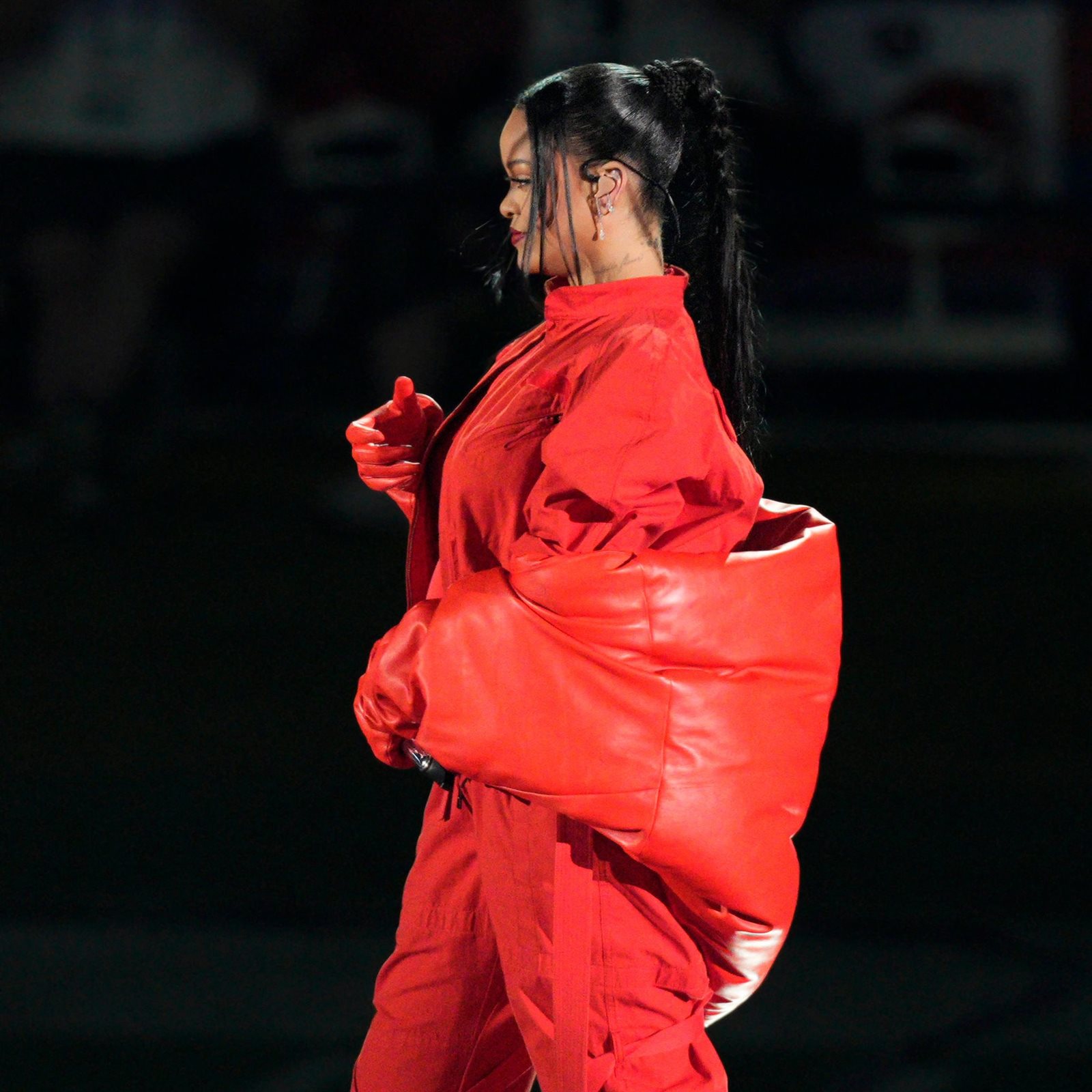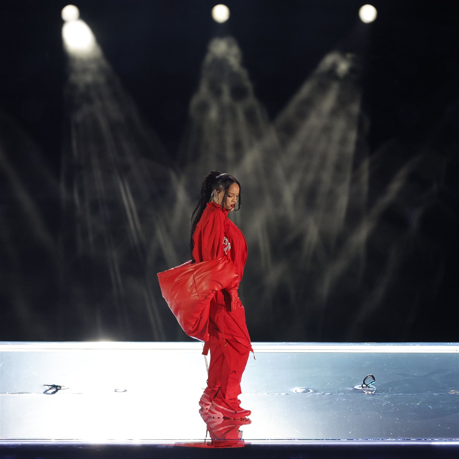 ريهانا، استعرضت المغنية الشهيرة حملها خلف كواليس السوبر بول، حيث تخلت عن الجمبسوت والجاكت الضخم، التي ارتدتها خلال الاستعراض، لكي يظهر حملها بشكل واضح، في صور جديدة نشرتها المغنية.