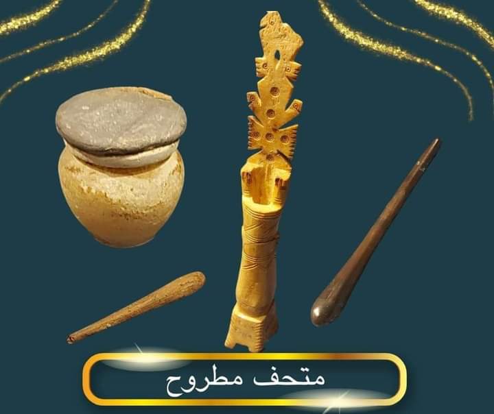 عرض متحف مطروح قطعة أثرية جديدة للمكحلة والتي كانت تستخدمها النساء في مصر القديمة نصيبا كبيرًا من الاهتمام برسم أعينهم بالكحل لإبراز جمال العيون.