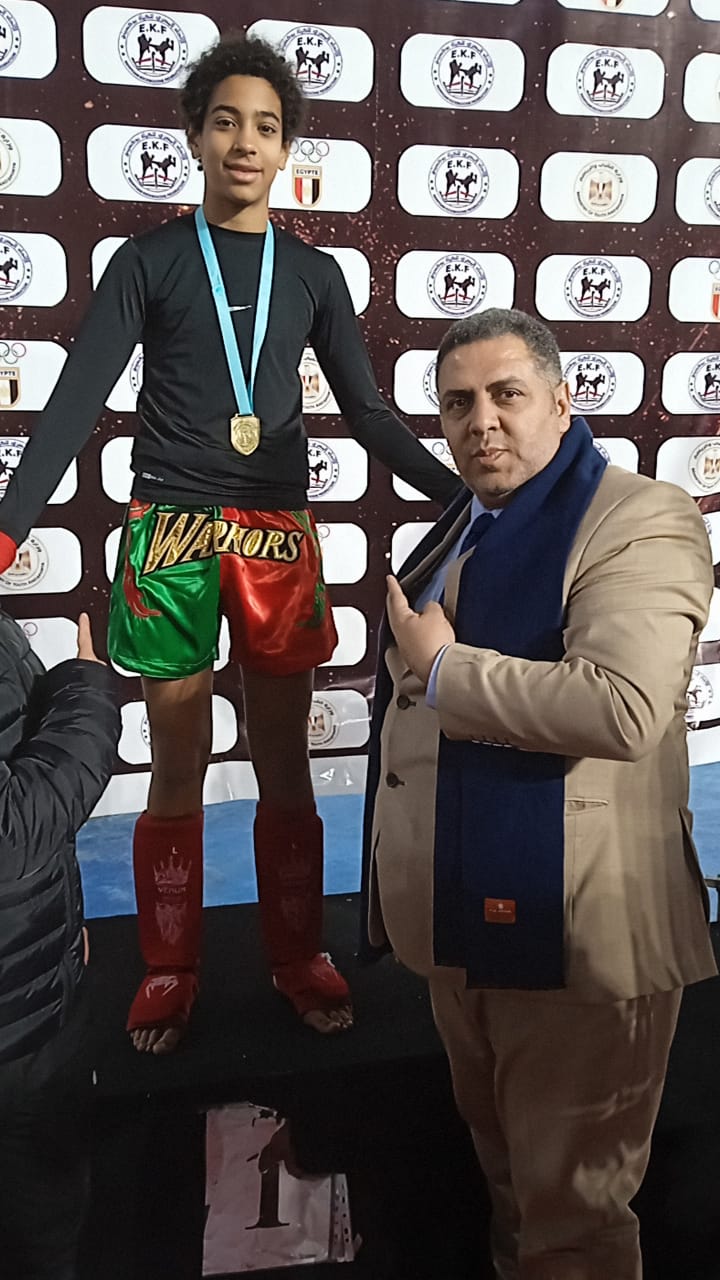 علي عماد بطلا لدوري الجمهورية للناشئين للكيك بوكسينج ميزان 53