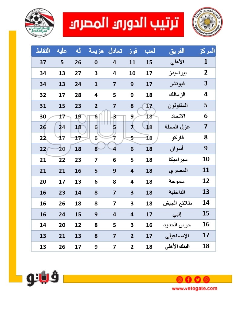 11- المصري 21 نقطة