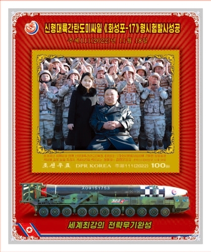 وتحمل الطوابع الجديدة صور تفقد كيم جونج أون لإطلاق صاروخ "هواسونج-17" الباليستي العابر للقارات في 18 نوفمبر من العام الماضي.