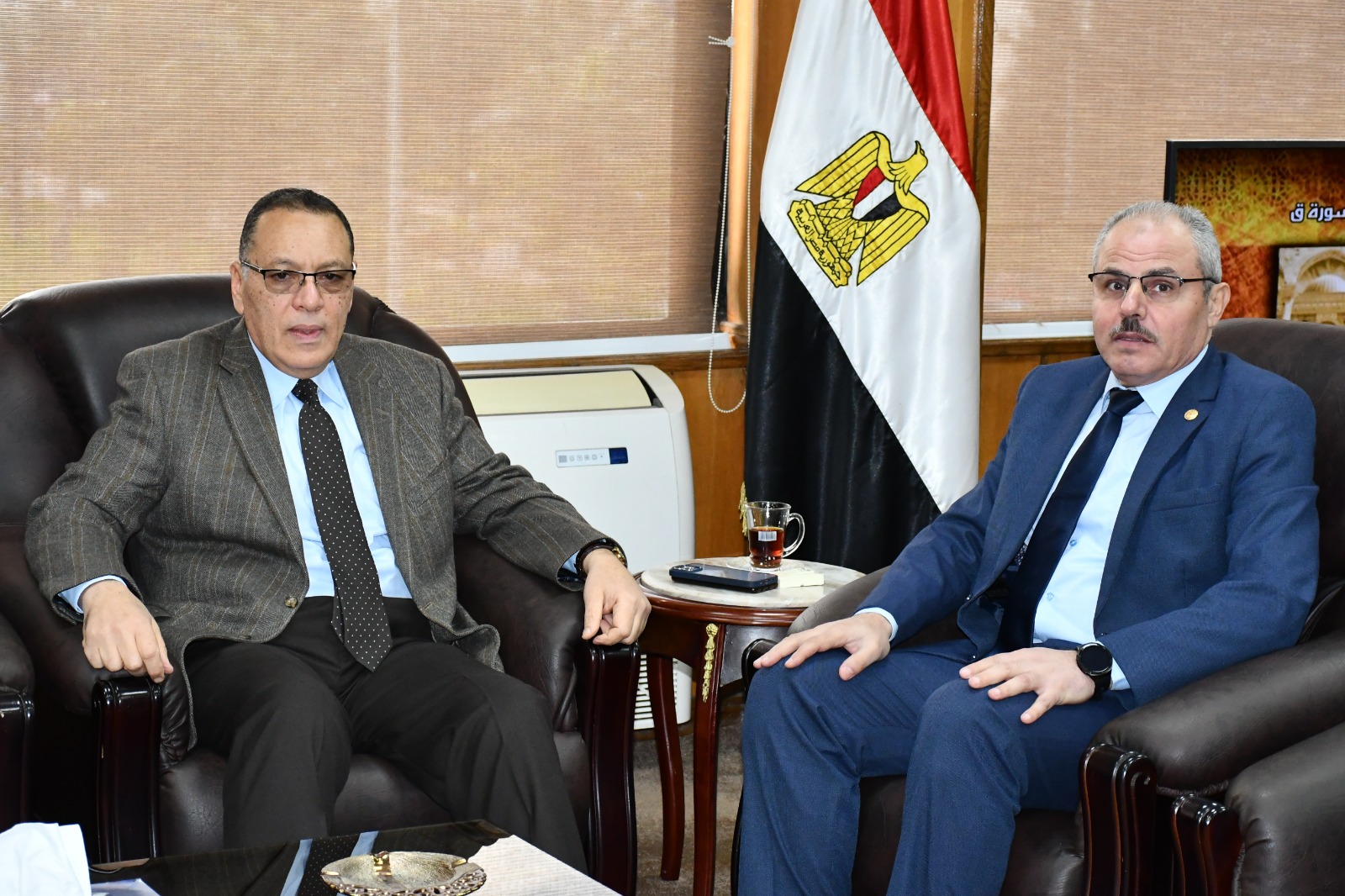 استقبل الدكتور ناصر مندور رئيس جامعة قناة السويس، الدكتور ممدوح غراب محافظ الشرقية وأستاذ الصيدلانيات بكلية الصيدلة ورئيس جامعة قناة السويس الأسبق.
