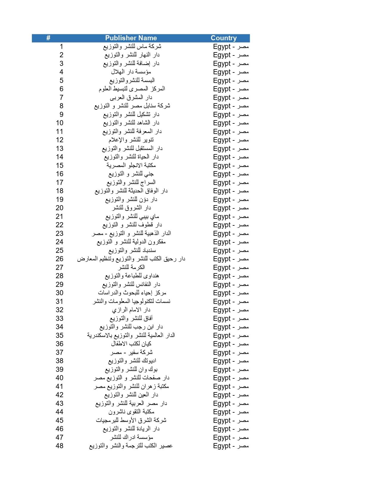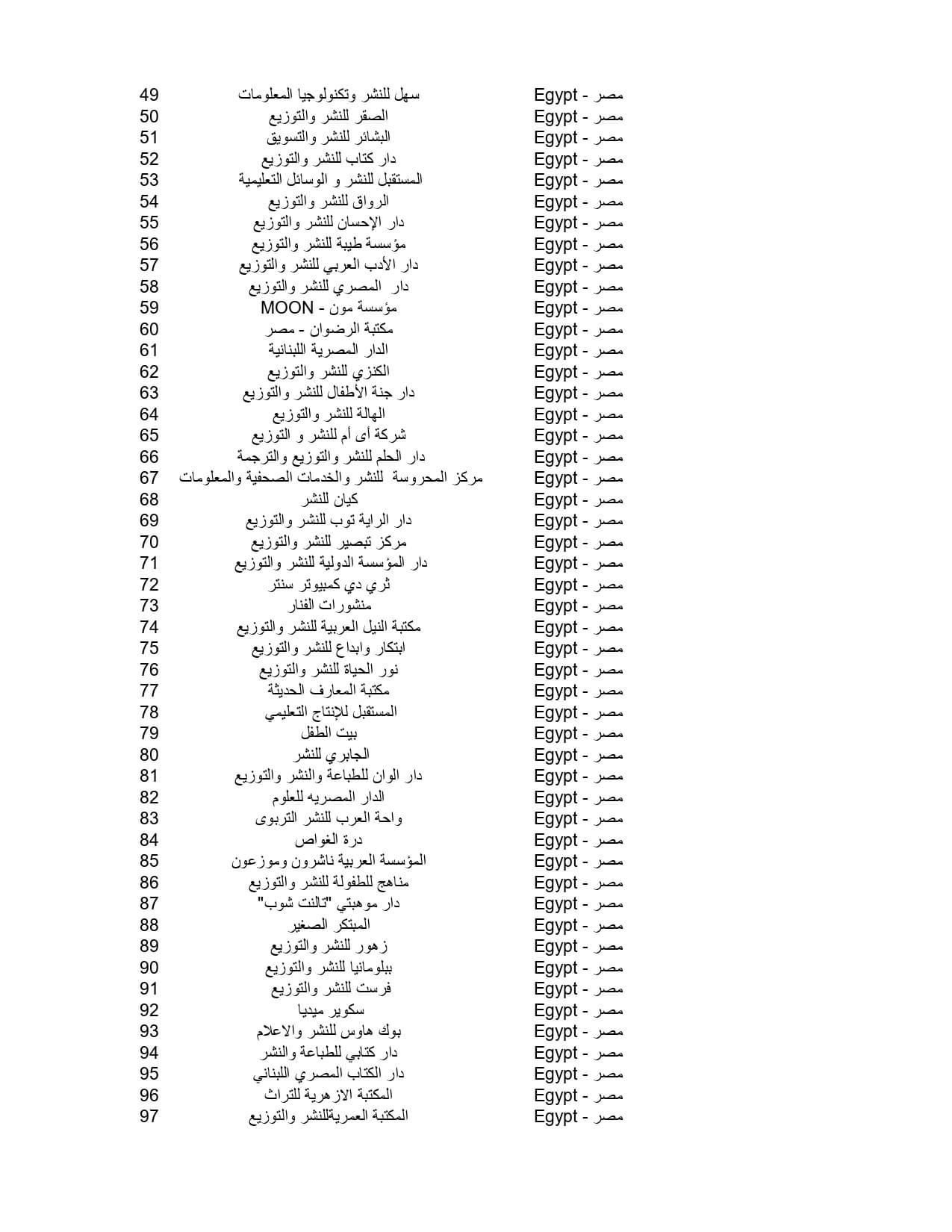 ويشارك في معرض المنطقة الشرقية بالسعودية 115 دار نشر مصرية كالتالي: