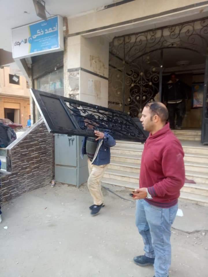وجاري اتخاذ الإجراءات القانونية حيال المخالف وتم مصادرة مواد البناء وإيداعها بمخزن الحي والتنبيه علي مشرفي المربعات باستمرار المتابعة اليومية لرصد جميع المخالفات والتعامل معها بمنتهى الحزم والإزالة الفورية في المهد واتخاذ الاجراءات القانونية اللازمة مع الرصد الدائم لاي مخالفات والاستجابة السريعة لأي شكاوى واردة والتعامل الفوري مع كل ما يطرأ أو ما يقدم من شكاوي أو بلاغات قد تسبب معاناة للمواطن بهدف الوصول لحل جذري لها وتحسين مستوي الخدمات المقدمة والعمل علي تلبية طموحات المواطنين وتحقيق رضاهم.