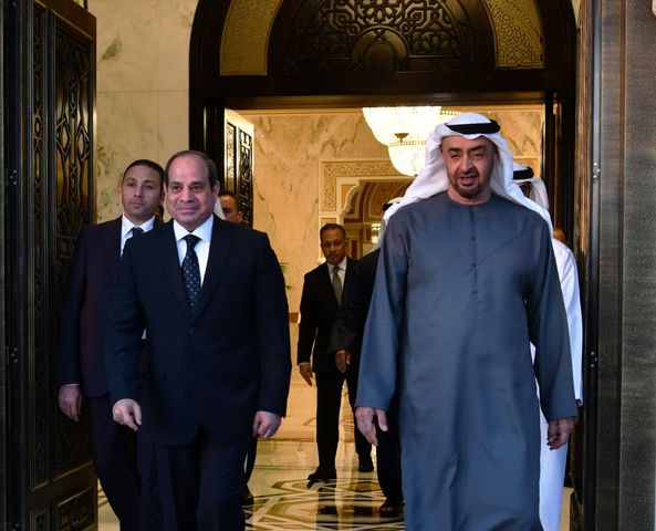 وقال الرئيس السيسي إن محمد بن زايد آل نهيان ساعد بشكل كبير في استقرار الوضع المصري حيث زار مصر سنة 2013، وكان يعلم احتياجاتها، حيث أمر بتحويل سفن تحمل سلعًا بترولية حيوية بالبحر المتوسط إلى مصر، لمساعدتها في أزمتها" مؤكدًا أن استقرار الوضع المصري منذ سنة 2013 تحقق من خلال وقوف الإمارات والأشقاء العرب معها، داعيًا الدول الشقيقة إلى أن لا يسمحوا للمغرضين بالتأثير على الروابط الأخوية بين الدول.