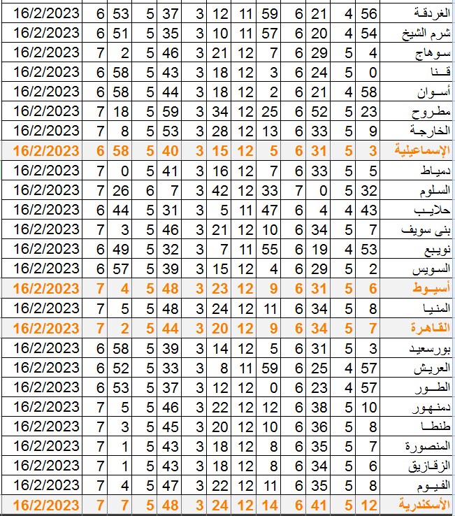 مواقيت الصلاة اليوم الخميس 16- 2 - 2023 في القاهرة والمحافظات
