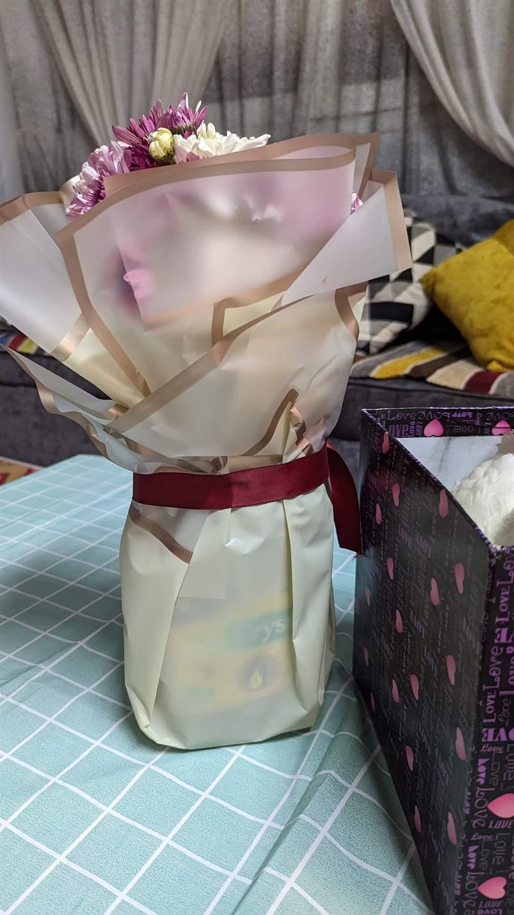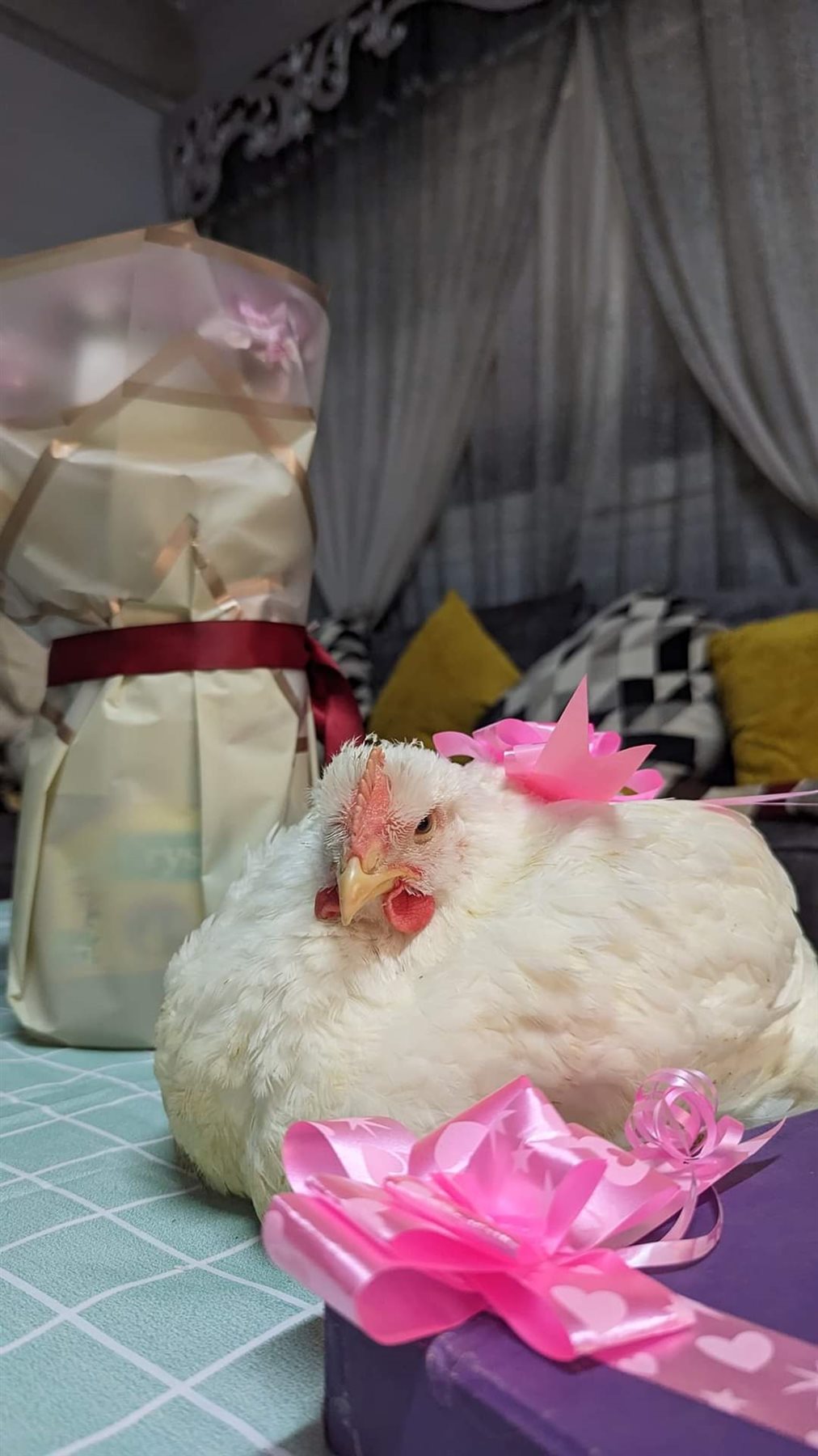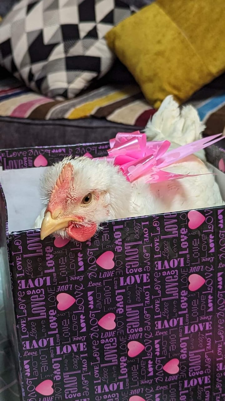 عيد الحب، شاب يهدي زوجته فرخة وزجاجة زيت ملفوفة بالورود (صور)