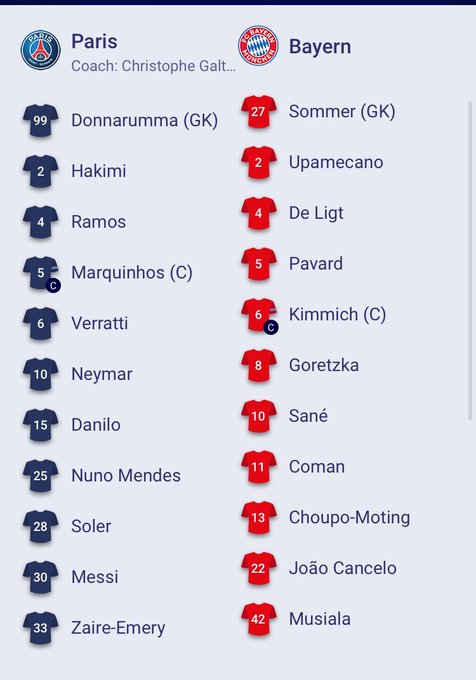 تشكيل باريس سان جيرمان ضد بايرن ميونخ
