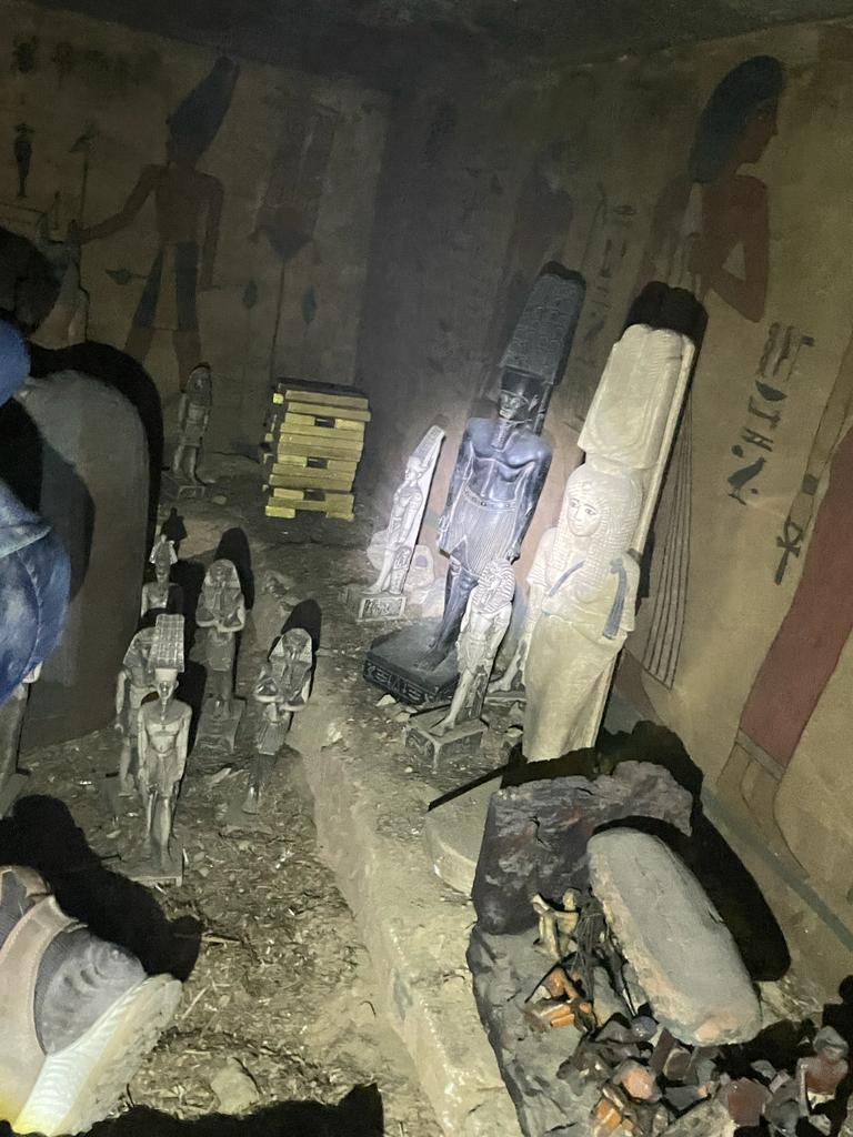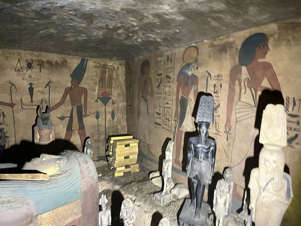 وأضاف الأمين العام للمجلس الأعلى للآثار، أنه دخل المقبرة المزيفة بعد تلقى البلاغ وفحصها بالكامل وهى مجهزة بشكل يشبه المقابر المصرية القديمة لتصويرها والنصب على المواطنين بحجة بيعها، فوجد على جدرانها رسومات ونقوش وخرطوش لا يمت للحضارة المصرية بأى صلة، موضحًا أن جميع الرسومات داخل المقبرة المزيفة مرسومة من الكتب الفرعونية، وبداخلها كمية من التماثيل المصنوعة يدويًا وتابوت من الجبس وعليها نقوش وأشكال تشبه تماثيل الحضارة المصرية القديمة ولكنها مزيفة بالكامل، مؤكدًا على اتخاذ الإجراءات اللازمة وإعدام كافة محتويات المقبرة المزيفة.