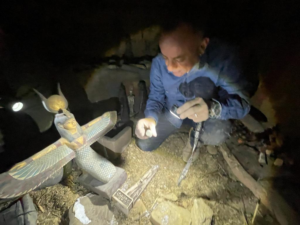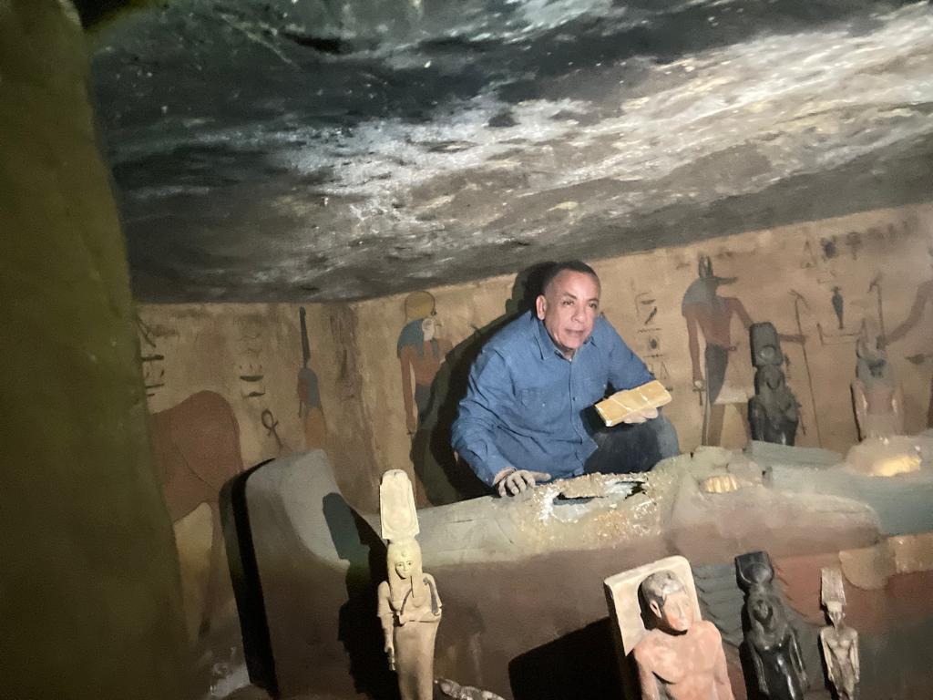 وقال الدكتور مصطفى وزيرى، إنه توجه لمكان وردت عليه بلاغ بوجود مقبرة أثرية فى بنى سويف، وعلى الفور توجه برفقة قيادات المجلس الأعلى للآثار لبحث البلاغ، وعثر على مقبرة مزيفة بالكامل وجميع التماثيل داخلها من الجبس وسبائك ذهبية مصنوعة من الجبس، وجميع محتويات تلك المقبرة ليست أثرية على الإطلاق.