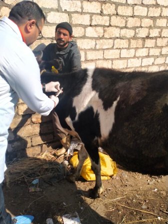 أشار مدير مديرية الطب البيطري إلى أن المتابعة الطبية البيطرية جاءت تنفيذًا لبروتوكول التعاون بين وزارة الزراعة ووزارة التضامن ووزارة الأوقاف لتوفير الدعم الفني وتوزيع رؤوس العجلات العشار على صغار المربين ضمن مبادرة رئيس الجمهورية ( حياة كريمة ) لتنمية الريف المصري وتفعيلًا لدور وزارة الزراعة ( الهيئة العامة للخدمات البيطرية ) بتقديم الخدمات الفنية حفاظًا على سلامة الماشية الواردة للمستفيدين وقامت اللجنة بمتابعة تقديم الخدمات الفنية الطبية البيطرية ( التحصين ضد الأمراض الوبائية - المسح التناسلي الشامل ومتابعة العشار - رش الماشية والحظائر ضد الطفيليات الخارجية – وسحب العينات لفحص الطفيليات الداخلية وطفيليات الدم – التأمين على العجلات المستلمة لتلافي المخاطر التي قد تتعرض لها ) وتم ترقيم وتسجيل ( 8 ) رؤوس ماشية بالناصرية و( 7 ) عجلات عشار بالظواهرية وجاري الفحص الطبي البيطري لباقي العجلات العشار.