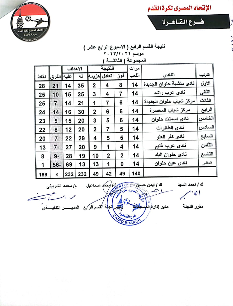 جدول ترتيب دوري القسم الرابع بالقاهرة